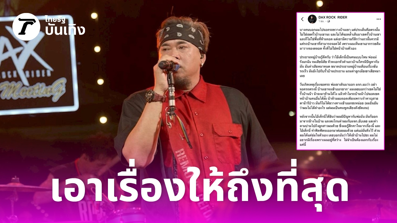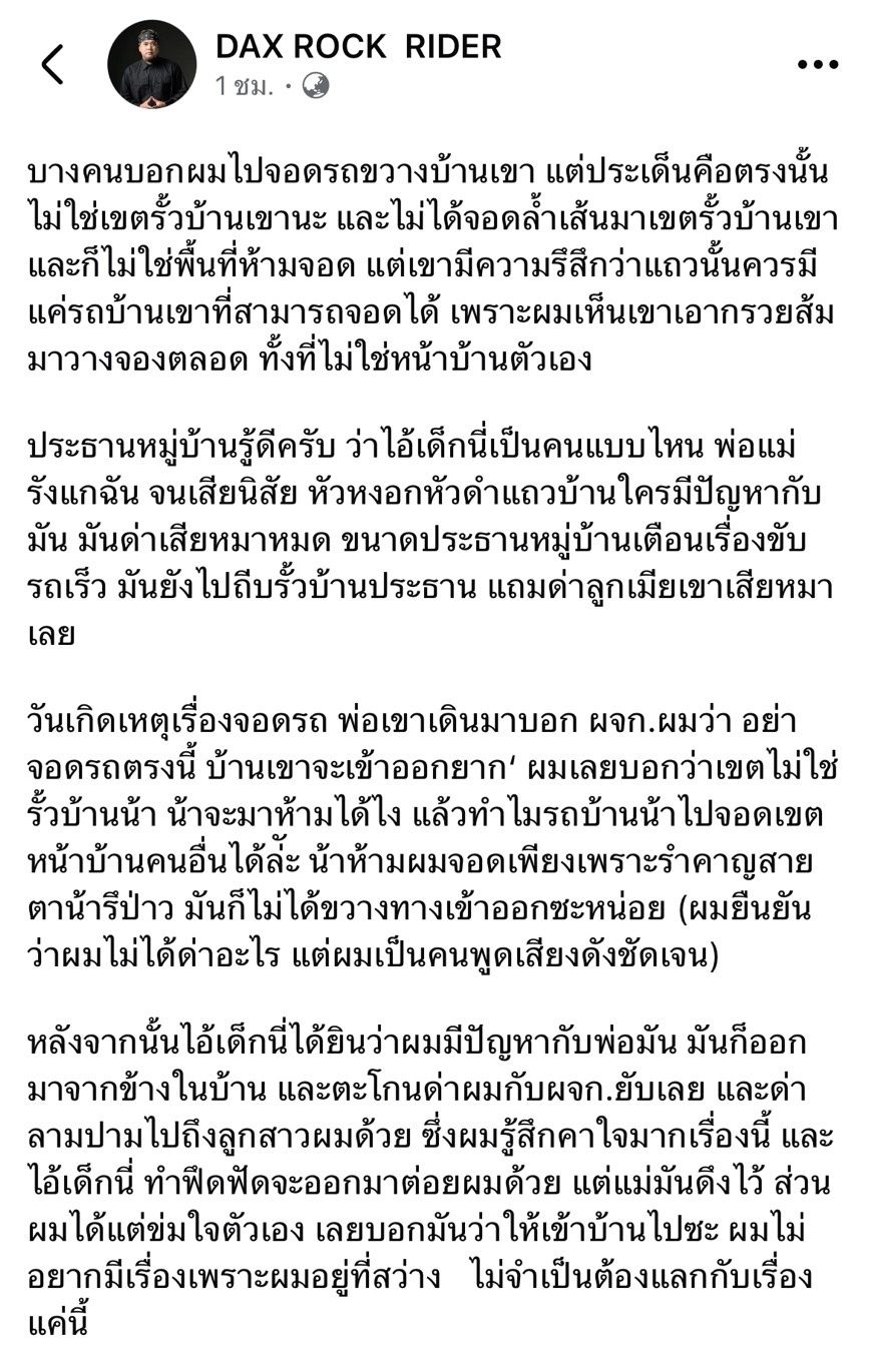 ล่าสุด แด๊กซ์ ร็อกไรเดอร์ หรือ แด๊กซ์ เอกรัตน์ วงศ์ฉลาด ก็ได้ออกมาโพสต์ชี้แจงถึงเรื่องดังกล่าว และเรื่องที่คู่กรณียังได้ลามปามคุกคามลูกสาวอีกด้วย พร้อมกับบอกว่า จะให้ทนายความดำเนินคดีให้ถึงที่สุด