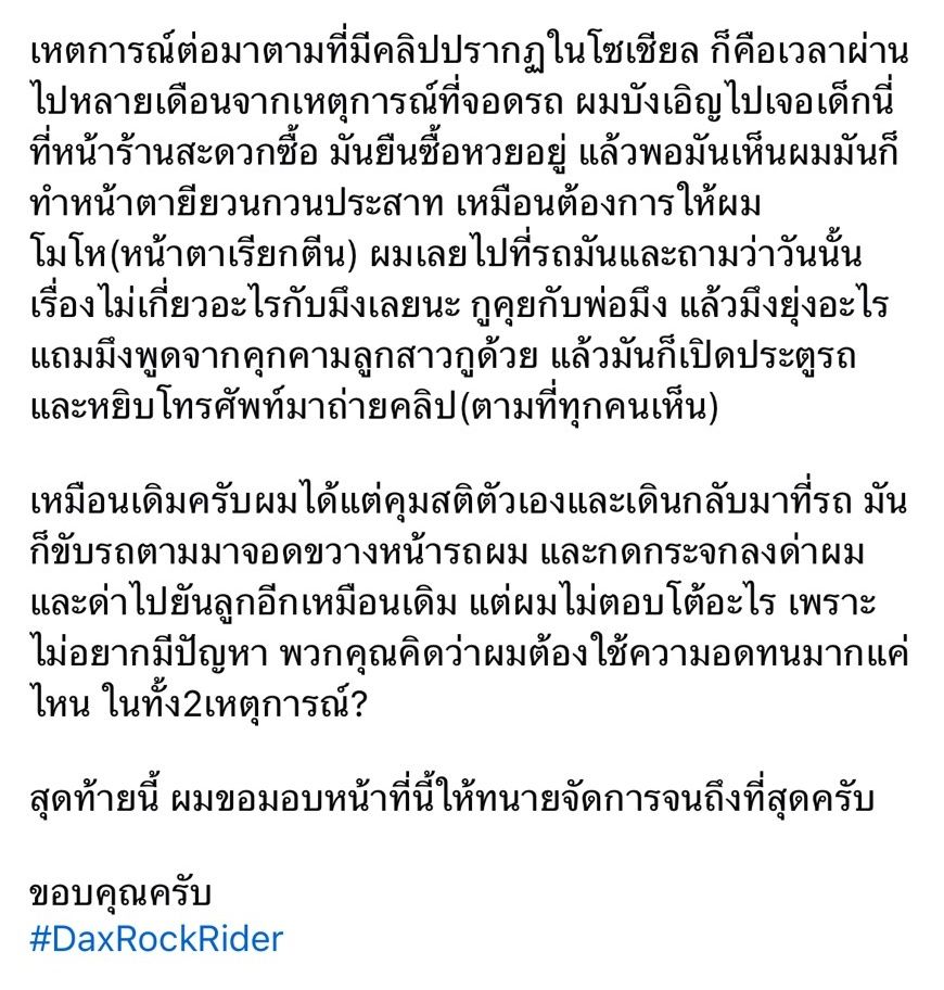 สุดท้ายนี้ ผมขอมอบหน้าที่นี้ให้ทนายจัดการจนถึงที่สุดครับ ขอบคุณครับ #DaxRockRider