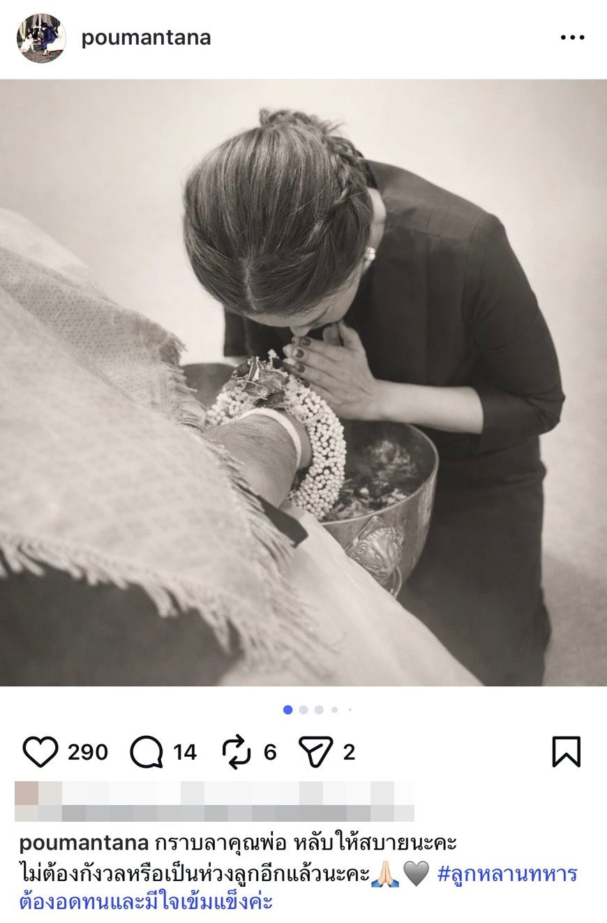 ขอแสดงความเสียใจกับนักแสดงสาว ปู มัณฑนา ซึ่งล่าสุดเจ้าตัวได้แจ้งข่าวสุดเศร้าสูญเสียคุณพ่อผู้เป็นที่รักไปตลอดกาล โดยได้โพสต์ภาพรดน้ำศพคุณพ่อพร้อมกราบลา พร้อมเขียนข้อความว่า