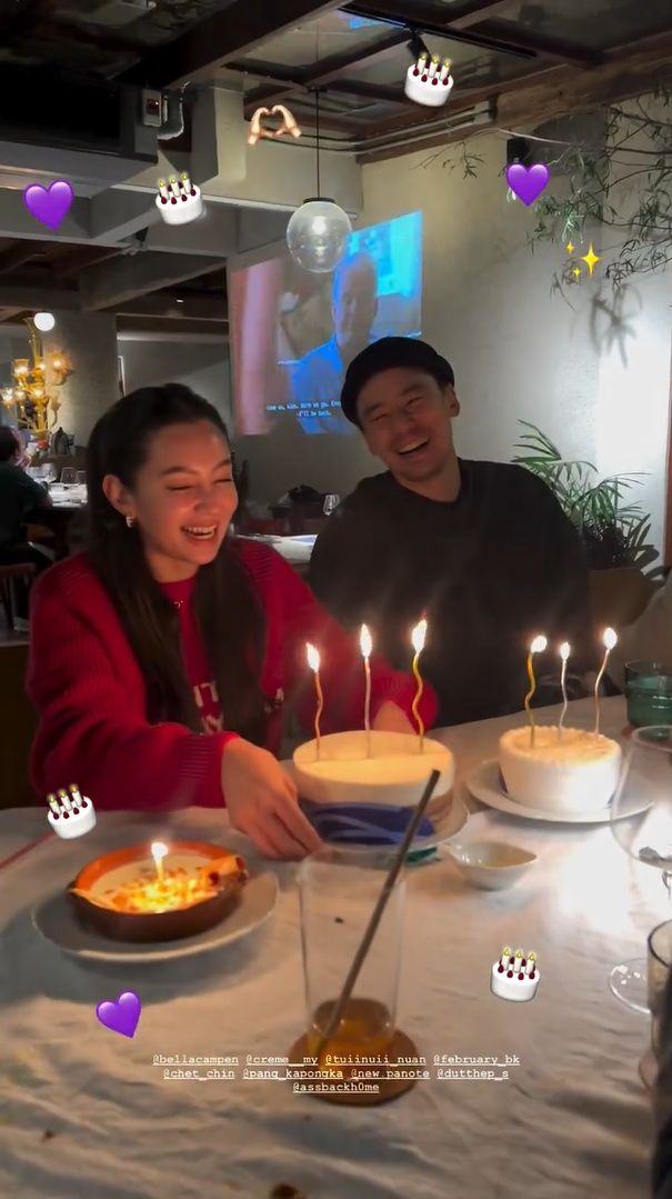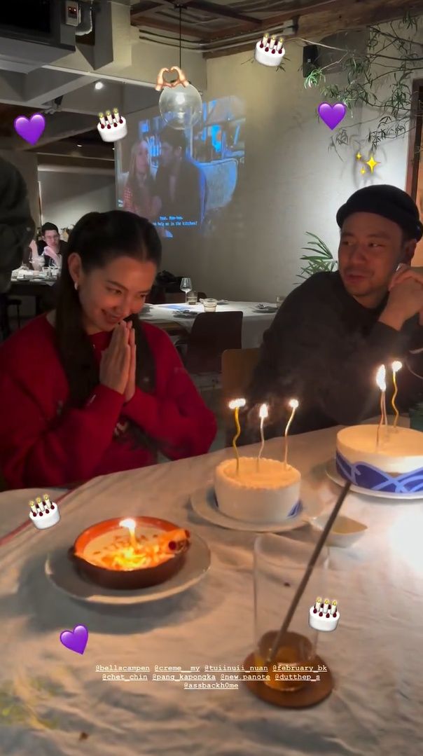 โดยในไอจีสตอรี่ @bellacampen ก็ได้รีโพสต์คลิปโมเมนต์น่ารักตอนที่พนักงานนำเค้กวันเกิดมาให้เบลล่าเป่า โดยมีวิลนั่งอยู่ข้างๆ และมีเพื่อนๆ อีกหลายคนมาร่วมฉลองวันเกิดของเบลล่าด้วย บรรยากาศเป็นไปอย่างเรียบง่าย เต็มไปด้วยรอยยิ้มและเสียงหัวเราะ