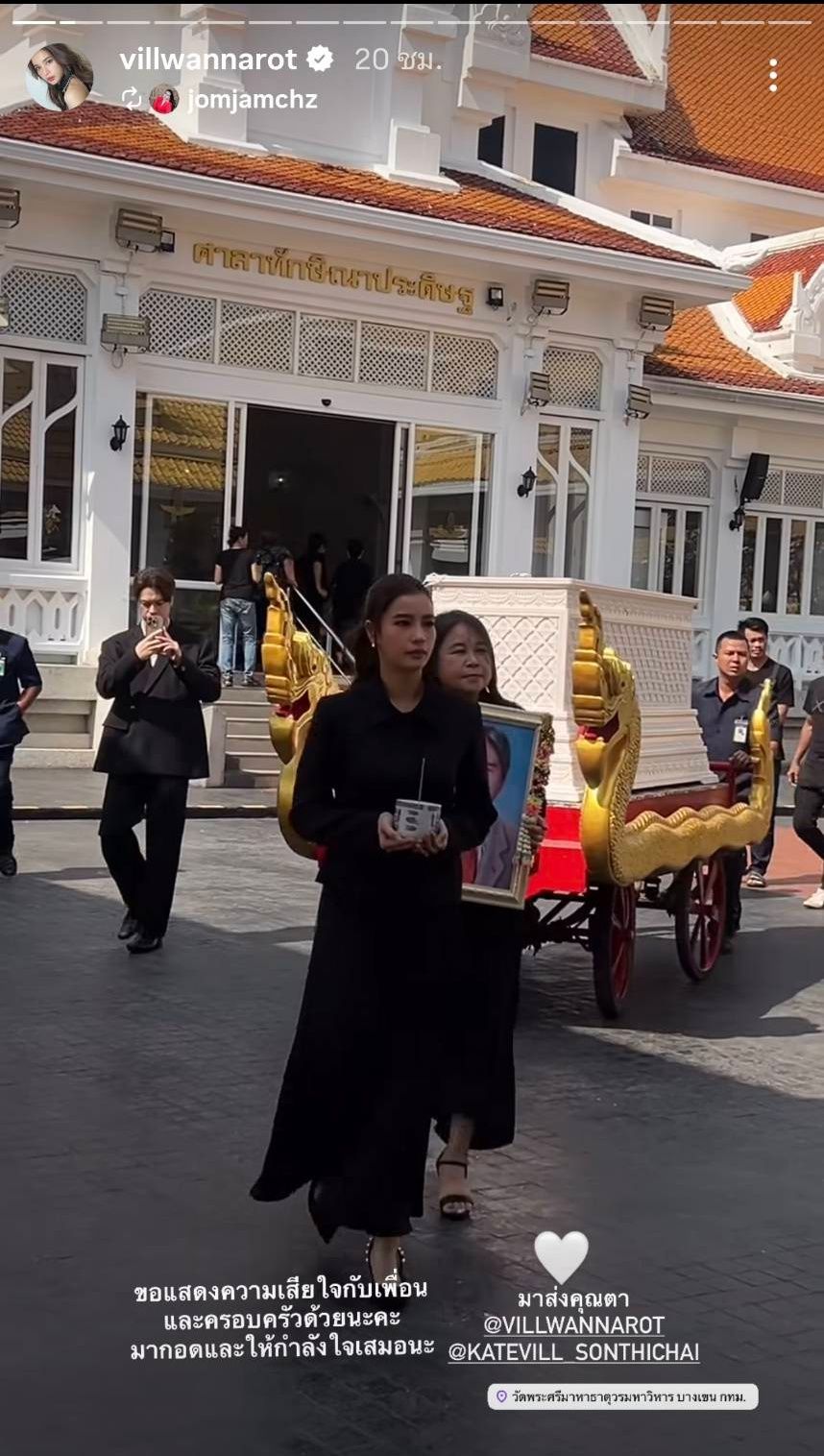 ซึ่งในพิธีฌาปนกิจคุณตาก็มีผู้คนมาร่วมงานมากมาย รวมไปถึงคนในวงการบันเทิงที่ต่างส่งข้อความและพวงหรีดร่วมแสดงความเสียใจและไว้อาลัยต่อการจากไปของคุณตา ในขณะที่นักแสดงหนุ่ม แม็ค วีรคณิศร์ กานต์วัฒนกุล แฟนหนุ่มของวิว คอยอยู่เคียงข้างวิวไม่ห่างด้วย