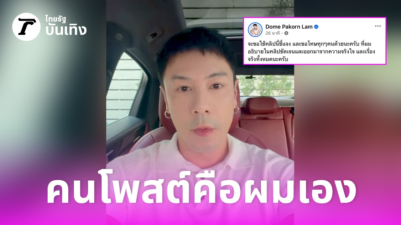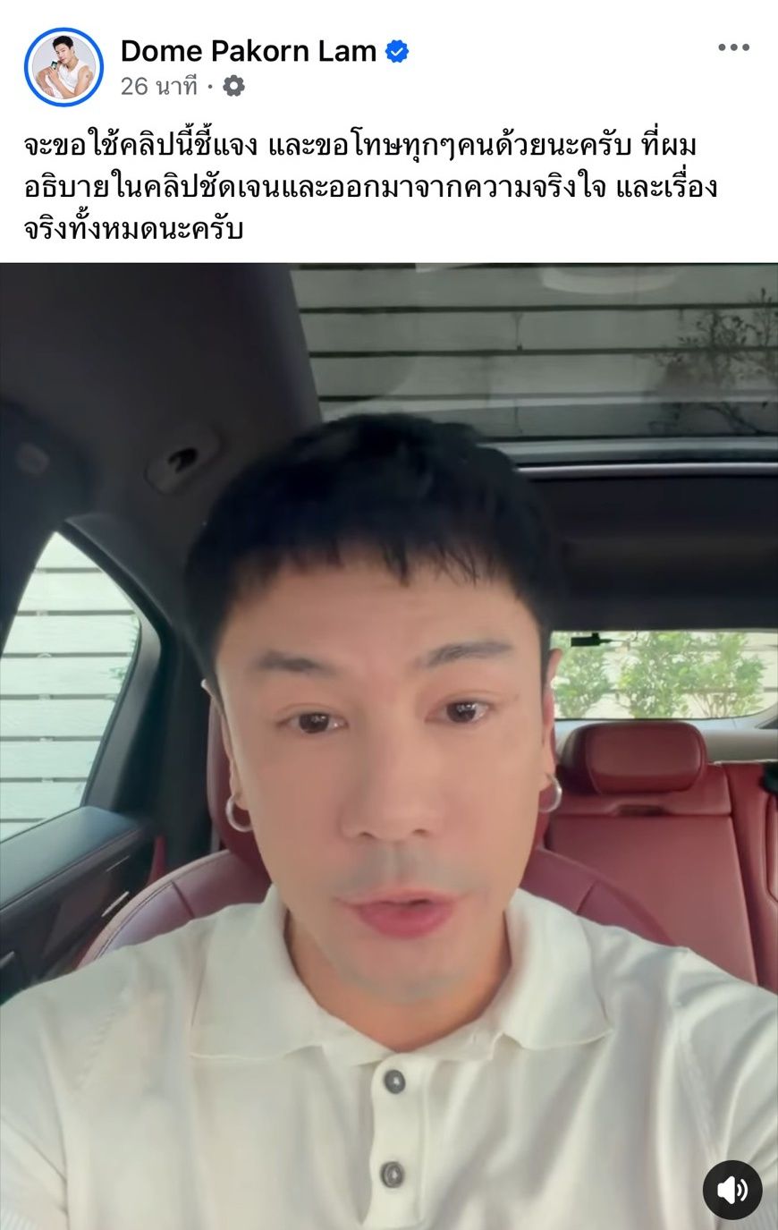 ล่าสุด โดม ก็ได้ออกมาโพสต์คลิปอธิบายด้วยความจริงใจถึงเรื่องราวที่เกิดขึ้น บอกว่า จากที่ไปไล่เรียงไทม์ไลน์ทั้งหมด แอดมินเพจมีทั้งหมด 7 คน ซึ่งคนที่โพสต์นั้นคือตนเอง พร้อมกับขอโทษกับเรื่องที่เกิดขึ้น