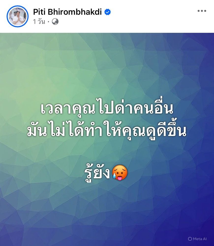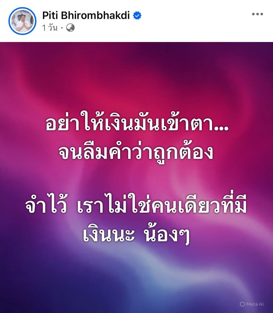 ไม่รู้ว่าเกิดอะไรขึ้น แต่งานนี้ดูเหมือนว่าชาวเน็ตรวมตัวแห่ใส่ใจทันที เมื่อ ต๊อด ปิติ ภิรมย์ภักดี สามีของ นุ่น วรนุช ได้โพสต์ข้อความสุดเดือดกลางโซเชียล ในทำนองเตือนสติเรื่องการใช้ชีวิตและการใช้เงิน เขียนว่า