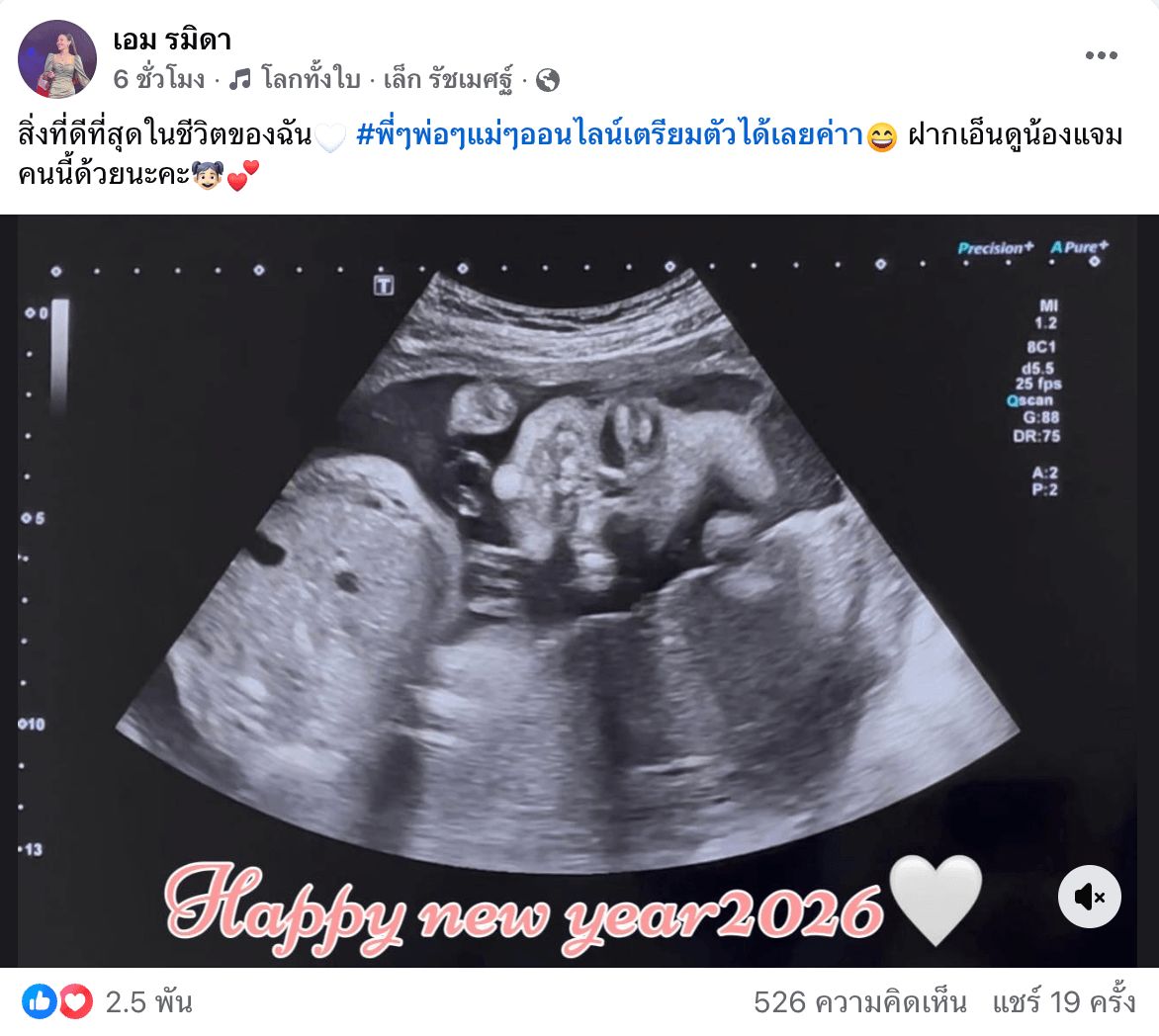 ทางด้านว่าที่คุณแม่ เอม รมิดา ก็โพสต์ภาพพร้อมแคปชันว่า "สิ่งที่ดีที่สุดในชีวิตของฉัน #พี่ๆพ่อๆแม่ๆออนไลน์เตรียมตัวได้เลยค่าา ฝากเอ็นดูน้องแจมคนนี้ด้วยนะคะ"