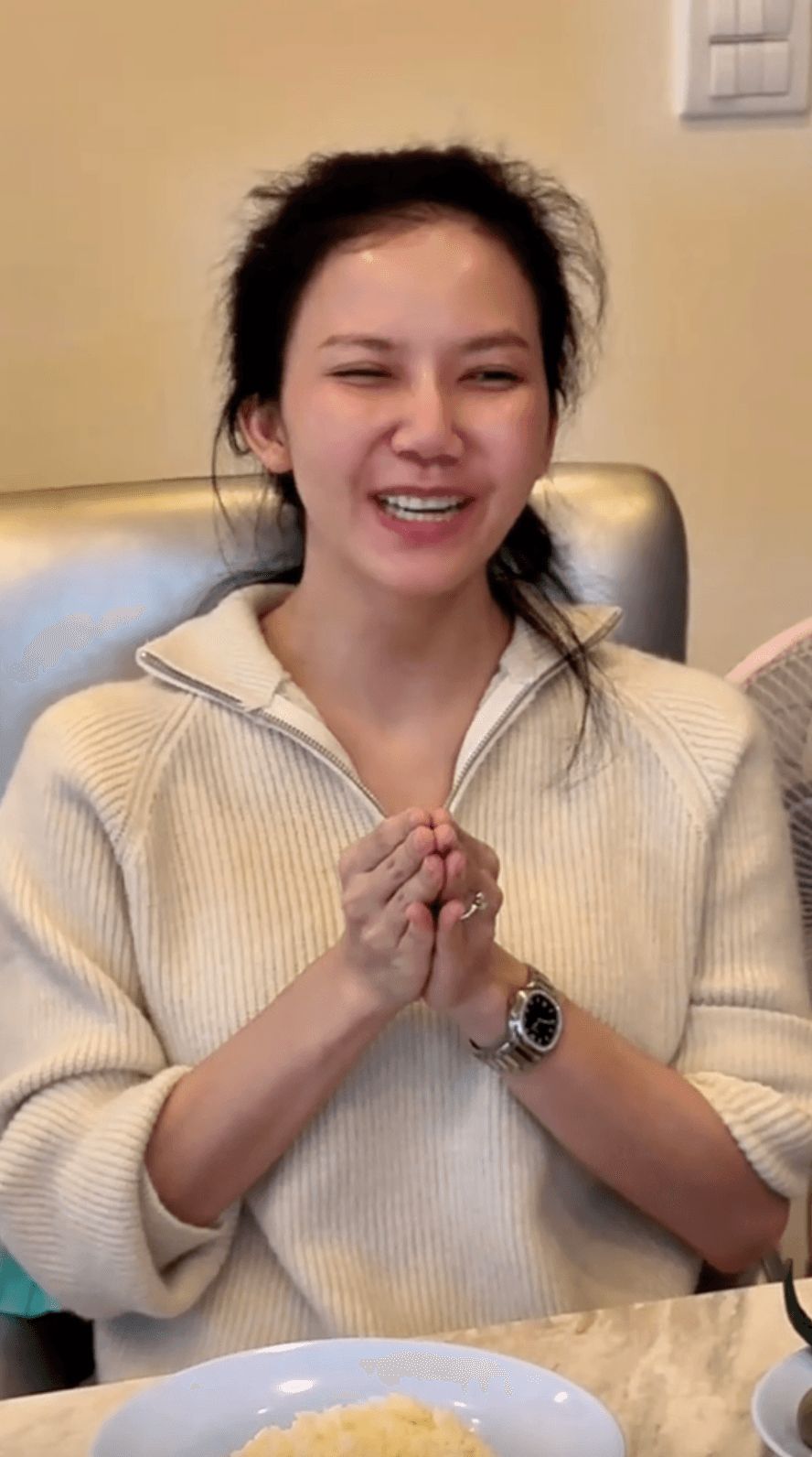 ซึ่งในคลิปนั้น เป็นคลิปที่ 3 คนพ่อแม่ลูก นั่งอยู่ที่โต๊ะกินข้าว ที่มีกับข้าวมากมายหลายอย่างน่ากินมากๆ แต่ก่อนจะกินข้าว พ่อของจ๊ะกำลังสวดมนต์อย่างตั้งใจ โดยมีจ๊ะและแม่นั่งพนมมืออยู่ด้วย แต่ในคลิปนั้น จ๊ะหัวเราะจนน้ำตาเล็ด พร้อมกับพูดแบบไม่มีเสียงว่า "หิวข้าว หิวข้าว" ระหว่างที่ที่พ่อกำลังสวดมนต์อย่างตั้งใจ