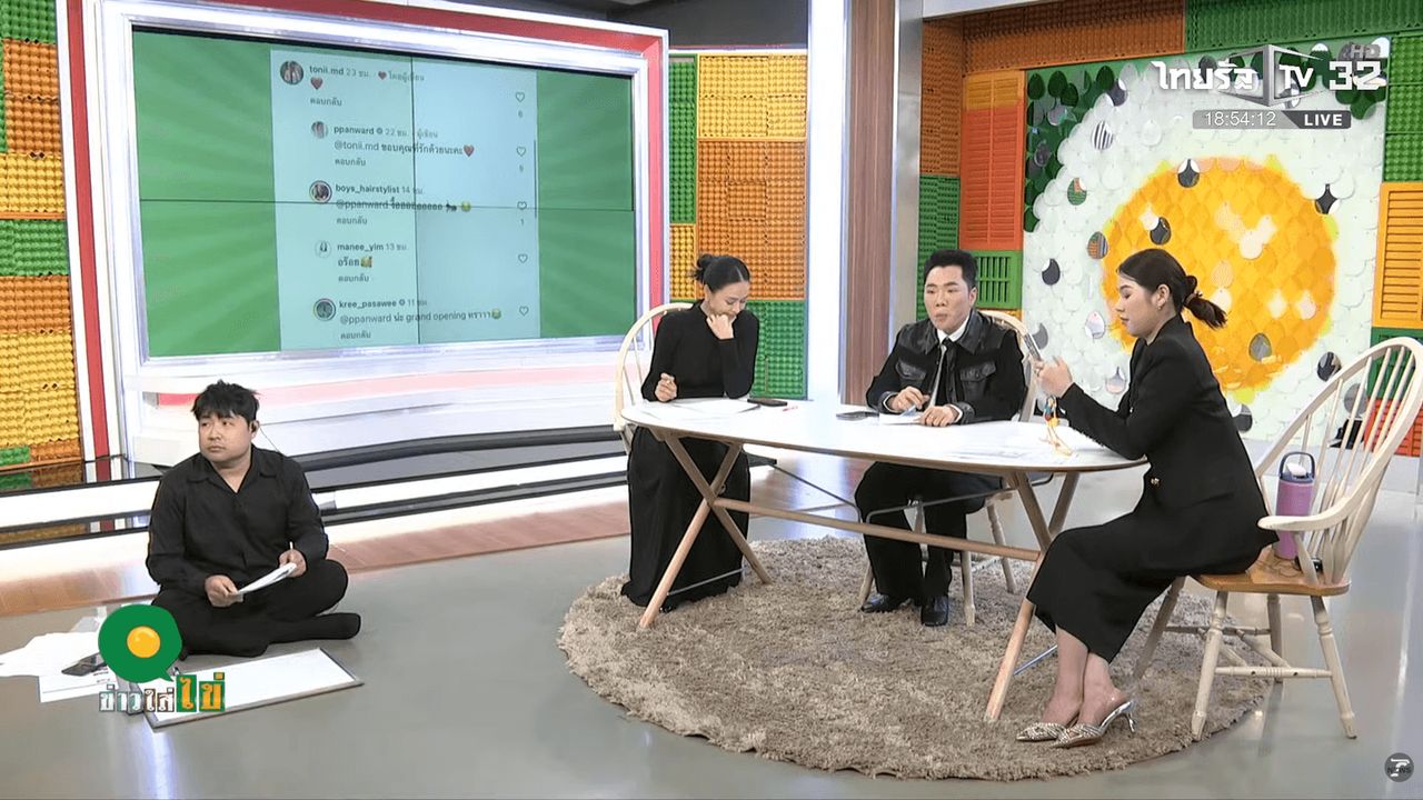 ล่าสุดในรายการ “ข่าวใส่ไข่” ทางไทยรัฐทีวี ช่อง 32 โดย 3 พิธีกร มดดำ คชาภา, รถเมล์ คะนึงนิจ, มิ้นท์ อรชพร และ แองจี้ โปรดิวเซอร์ ก็ได้พูดถึงข่าวดังกล่าว มดดำถามแองจี้ว่าแฟนเป้ยคือใคร ฉันสงสัยคนคนนึงมากเลย แองจี้บอกว่าสัมภาษณ์ใน 3 แซ่บก็ไม่ยอมบอก