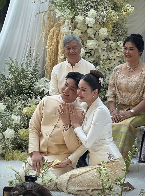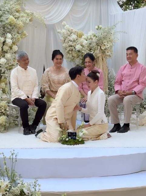 บรรยากาศในงานเต็มไปด้วยความหวาน ความรัก ความอบอุ่นของทั้ง 2 ครอบครัว ญาติ และคนสนิทที่มาร่วมเป็นสักขีพยาน ท่ามกลางอากาศเย็นสดชื่น