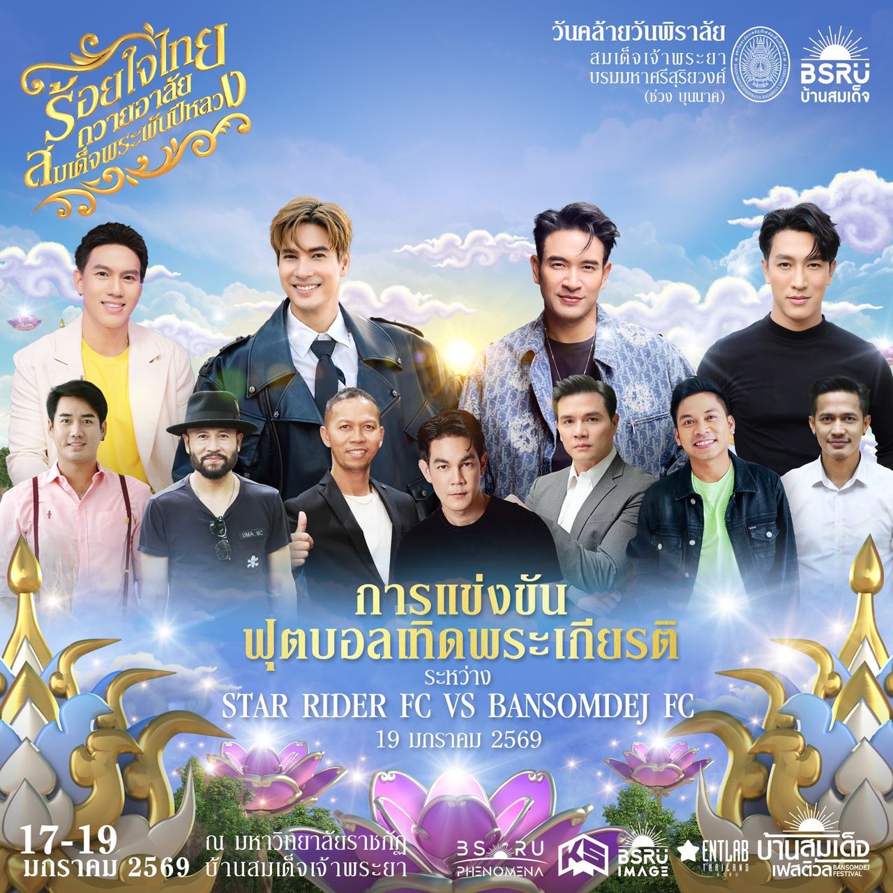 อีกหนึ่งไฮไลต์ที่แฟนๆ ห้ามพลาด คือ การแข่งขันฟุตบอลเทิดพระเกียรติ ระหว่างทีมดารา STAR RIDER FC และ BANSOMDEJ FC ที่จะจัดขึ้นในวันจันทร์ที่ 19 มกราคม 2569 ณ สนามฟุตบอล Bansomdej Stadium งานนี้รวมทั้งนักแสดงและนักกีฬาชื่อดัง อาทิ ลีซอ ธีรเทพ, สมจิตร จงจอหอ, กอล์ฟ อนุวัฒน์, แจ๊บ เพ็ญเพชร, กิก ดนัย, คิง ก่อนบ่าย และเหล่าดาราขวัญใจแฟน ๆ มาโชว์ลีลาในสนามแบบใกล้ชิด
