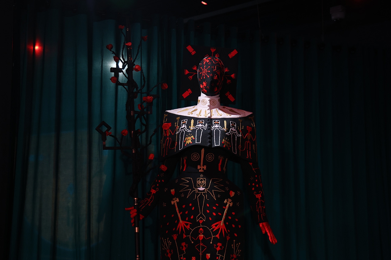 งานปักสุดประณีต: ภายในงานมีการจัดแสดง “copes” หรือผ้าคลุมปักมือจำนวน 12 ชิ้นจากทั้งหมด 25 ชิ้น ซึ่งได้รับแรงบันดาลใจจากผ้าคลุมพิธีกรรมของนักบวชคาทอลิกชั้นสูง