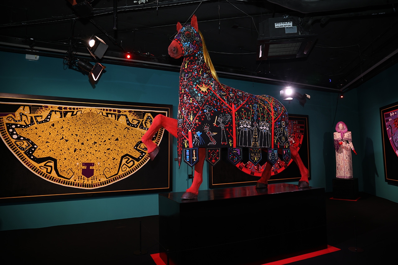 นอกจากงานสิ่งทอที่เป็นพระเอกของงานแล้ว นิทรรศการนี้ยังมีการจัดแสดงวัตถุเชิงสัญลักษณ์อย่าง "ม้าสีแดงขนาดเท่าจริง" และผลงานภาพจิตรกรรมศาสนาบานพับ (Triptych) ซึ่งเป็นการทำงานร่วมกันระหว่าง Director Jacq กับศิลปินร่วมสมัยชื่อดังทั้งไทยและนานาชาติกว่า 15 ท่าน อาทิ Kasing Lung, Mu Pan, Michael Hutter รวมถึงศิลปินไทยอย่าง สุวัฒน์ บุญธรรม และ เริงศักดิ์ บุณยวาณิชย์กุล พร้อมด้วยดนตรีประกอบต้นฉบับที่ศิลปินประพันธ์ขึ้นเองเพื่อสร้างประสบการณ์การรับชมที่สมบูรณ์ที่สุด