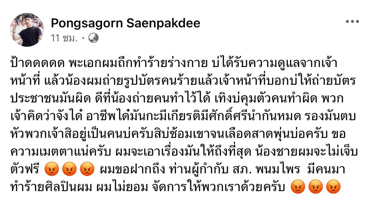 “อาชีพไหนมันก็มีเกียรติมีศักดิ์ศรีนำกันหมด ลองมันตบหัวพวกเจ้าสิอยู่เป็นคนบ่ครับ... ผมขอฝากถึงท่านผู้กำกับ สภ.พนมไพร จัดการให้พวกเราด้วยครับ” หลังจากโพสต์ดังกล่าวเผยแพร่ออกไป บรรดาแฟนคลับและคนในวงการหมอลำต่างเข้ามาคอมเมนต์ให้กำลังใจ พร้อมกดแชร์เพื่อเรียกร้องความยุติธรรมให้กับ “พระเอกเสียงวิหค” เป็นจำนวนมาก โดยส่วนใหญ่ตำหนิพฤติกรรมของผู้ก่อเหตุและตั้งคำถามถึงมาตรฐานการทำงานของเจ้าหน้าที่ในคืนเกิดเหตุ