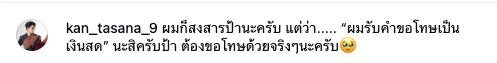 ทางด้านกานต์ได้นำข้อความดังกล่าวมาโพสต์ พร้อมเขียนแคปชันเอาไว้ว่า "ผมก็สงสารป้านะครับ แต่ว่า..... “ผมรับคำขอโทษเป็นเงินสด” นะสิครับป้า ต้องขอโทษด้วยจริง ๆ นะครับ"