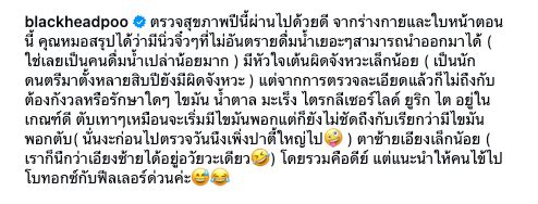 ทำเอาแฟนๆ ส่งกำลังใจให้ เมื่อนักร้องรุ่นใหญ่อย่าง ปู แบล็คเฮด ได้เผยผลตรวจสุขภาพร่างกายประจำปีนี้ให้ได้ทราบกัน เรียกว่าไปอ่านขำไป และส่งกำลังใจให้แบบรัวๆ โดยเจ้าตัวเปิดเผยให้ฟังว่า