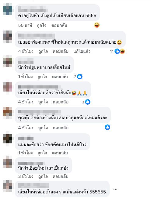 ซึ่งก็ค่อนข้างไปทิศทางเดียวกันไม่ว่าจะเป็น คำอยู่ในหัว เบิ่งธูปเบิ่งเทียนเด้อแอน 5555, เบลอย่าร้องนะคะ พี่ใหม่ถูกนวดแล้วหลับสบาย, นึกว่าปฐมพยาบาลให้เอื้อยใหม่, นึกว่าเอื้อยใหม่ เล่าเป็นหยัง, เสียงในหัวข่อยดังแฮง, ว่าแม่นแต่งหน้า 555555