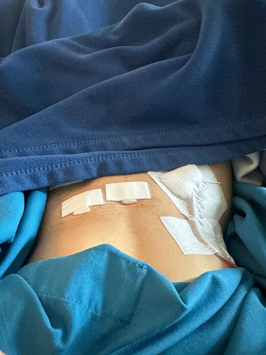 เลยต้องเข้าตรวจกับหมอสูตินารีแพทย์ ทำการตรวจภายใน และได้คำตอบว่าต้องเข้าผ่าตัดด่วนทันที เพราะก้อนเนื้อตรงนั้นคือซีสต์ที่แตก และเลือดยังไหลออกมาไม่หยุด