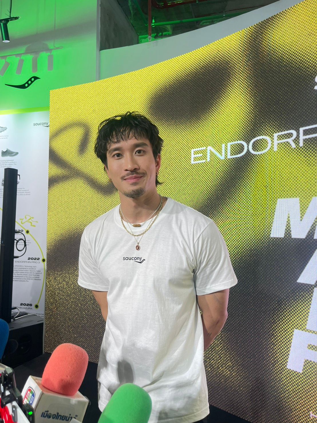 "ไม่ได้นานมากครับ ตอบไม่ถูกเลยว่ะ เหงื่อแตกไปหมดแล้ว เกร็งกว่าตอนขึ้นเวทีเมื่อกี้อีก"