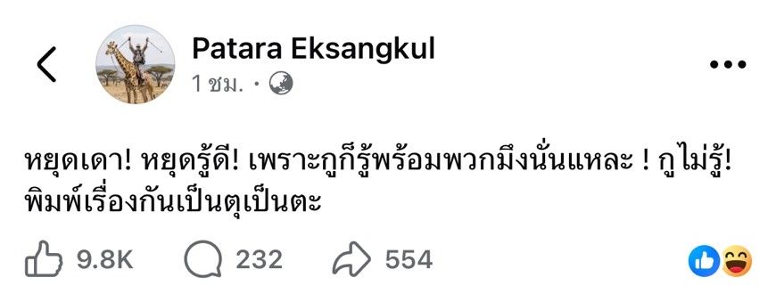 ล่าสุด เฟย ก็ได้โพสต์ข้อความผ่านเฟซบุ๊กแบบสั้นๆ แต่ได้ใจความ บอกว่า "หยุดเดา! หยุดรู้ดี! เพราะกูก็รู้พร้อมพวกมึงนั่นแหละ ! กูไม่รู้! พิมพ์เรื่องกันเป็นตุเป็นตะ"