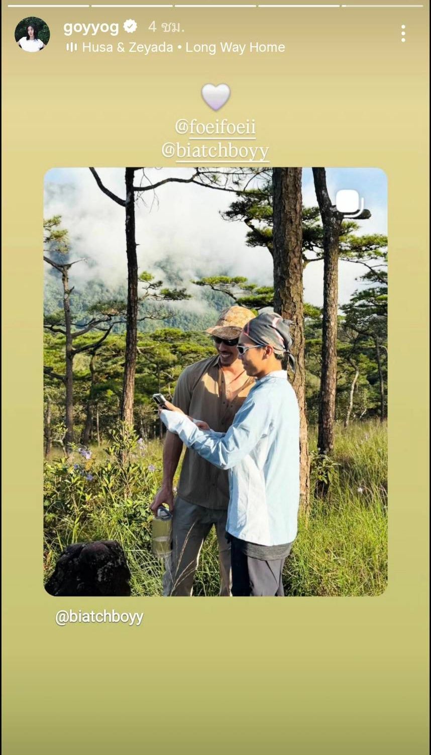 จากนั้น ก้อย อรัชพร แชร์ภาพเก่าของ กาน-เฟย จากไอจีของกาน @biatchboyy ลงไอจีสตอรี่และใส่เพลง “Long Way Home” ศิลปิน Husa & Zeyada พร้อมทั้งส่งอีโมจิหัวใจและแท็กไปถึงทั้งคู่ จากนั้น กาน ก็รีโพสต์สตอรี่ของก้อย และเขียนข้อความว่า “LOVE YOU” บ่งบอกถึงมิตรภาพความเป็นเพื่อนที่ยังคงงดงามด้วย