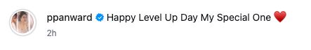 ซึ่งเป้ยได้โพสต์รูปภาพที่ถ่ายคู่กับคุณหมอต้น โพสต์ลงในอินสตาแกรมพร้อมแคปชันว่า "Happy Level Up Day My Special One" และอีโมจิหัวใจสีแดง บอกเลยว่าแต่ละรูปที่เห็นนั้น หวานจนคนโสดอยากจะหายตัวไปจากโลกใบนี้ งานนี้คุณหมอต้นก็ได้เข้ามาคอมเมนต์ในรูปดังกล่าวอีกว่า "ขอบคุณนะคับบบบ" และอีโมจิหัวใจสีแดง
