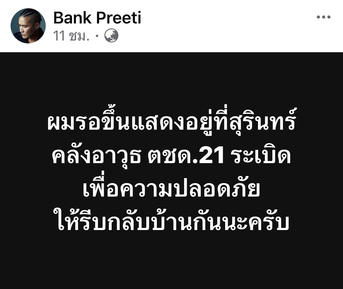 ซึ่ง “บันเทิงไทยรัฐ” ได้สอบถาม “หนุ่มแบงค์” เมื่อช่วงเช้าที่ผ่านมา ผจก.ส่วนตัว เล่าให้ฟังว่า ตอนเกิดเหตุ แบงค์กำลังเดินทางไปที่งาน เสียงระเบิดดังมาก เลยรีบโทรเช็คกับที่งาน ตอนแรกเจ้าภาพยังขอเช็คสถานการณ์ ด้านแบงค์เองก็ตกใจ แต่หลังจากนั้นไม่นาน ก็มีคนโทรมาบอกว่า จัดได้ เลยรีบไปงานเพราะมีคนมารอดูอยู่ แต่อย่างไรก็ตาม ตอนโชว์ แบงค์ ก็ได้ถามแฟนๆ ว่า กลัวไหม ทุกคนบอกว่า ยังสู้อยู่ ซึ่ง แบงค์ เอง มาทัวร์คอนเสิร์ตแถบอีสานใต้บ่อยๆ ก็เป็นห่วงทุกคนอยากให้สถานการณ์สงบจริงๆ