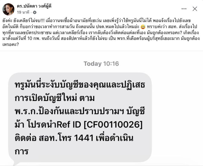 บัญชีโดนอายัดไม่เลิก 2 สัปดาห์แล้วยังเคลียร์ไม่จบ นี่ขนาดเราเป็นคนดังนะ เราทำงานประชาสัมพันธ์งานเรื่องของสแกมเมอร์ยังโดนขนาดนี้ แล้วชาวบ้านจะทำยังไง ตอนอายัด 2 นาทีคุณเสร็จ พอจะปลดบัญชี 2 สัปดาห์ยังไม่เสร็จเลยคืออะไร ที่มันช้า เพราะว่าต้องไปติดต่อเอง แล้วบุ๋มไม่มีเวลา เราก็ไม่รู้จะไปติดต่อไง ไม่ใช่แค่บางส่วน โดนหมดเลย ทั้งบัญชี บัตรเครดิต ยันทรูมันนี่ โดนหมดเลย ใช้อะไรไม่ได้เลยแล้วที่ตลกคือที่พี่ ๆ น้อง ๆ ในวงการนี้โทรมามีตังค์ไหม จะใช้อะไรไหมเดี๋ยวพี่โอนให้พี่โอนมา หนูก็เปิดไม่ได้