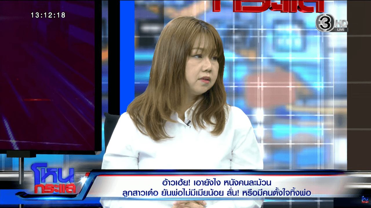 หนุ่ม กรรชัย ถามว่าที่มานั่งวันนี้ คุณต้องการสมบัติ ต้องการเงินใช่มั้ย เปิ้ลตอบว่า ไม่ได้ต้องการอะไรจากเขาเลย ถ้าคิดจะเอา เอาไปนานแล้ว ไม่ต้องรอจนพ่อป่วยหรอก แต่ที่พูดเพราะต้องการให้ทุกคนเห็นว่าพ่อไม่ได้เป็นอย่างที่เขาพูด อย่าตราหน้ากันแบบนี้ ไม่ดี ไม่ได้ต้องการเงินของเขา ออกมาทำให้พ่อเท่านั้น เพราะพ่อไม่ได้มีเมียน้อย ไม่ได้จดทะเบียนสมรส