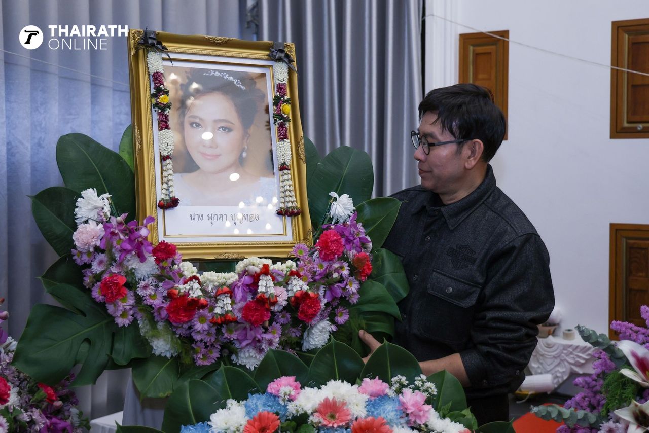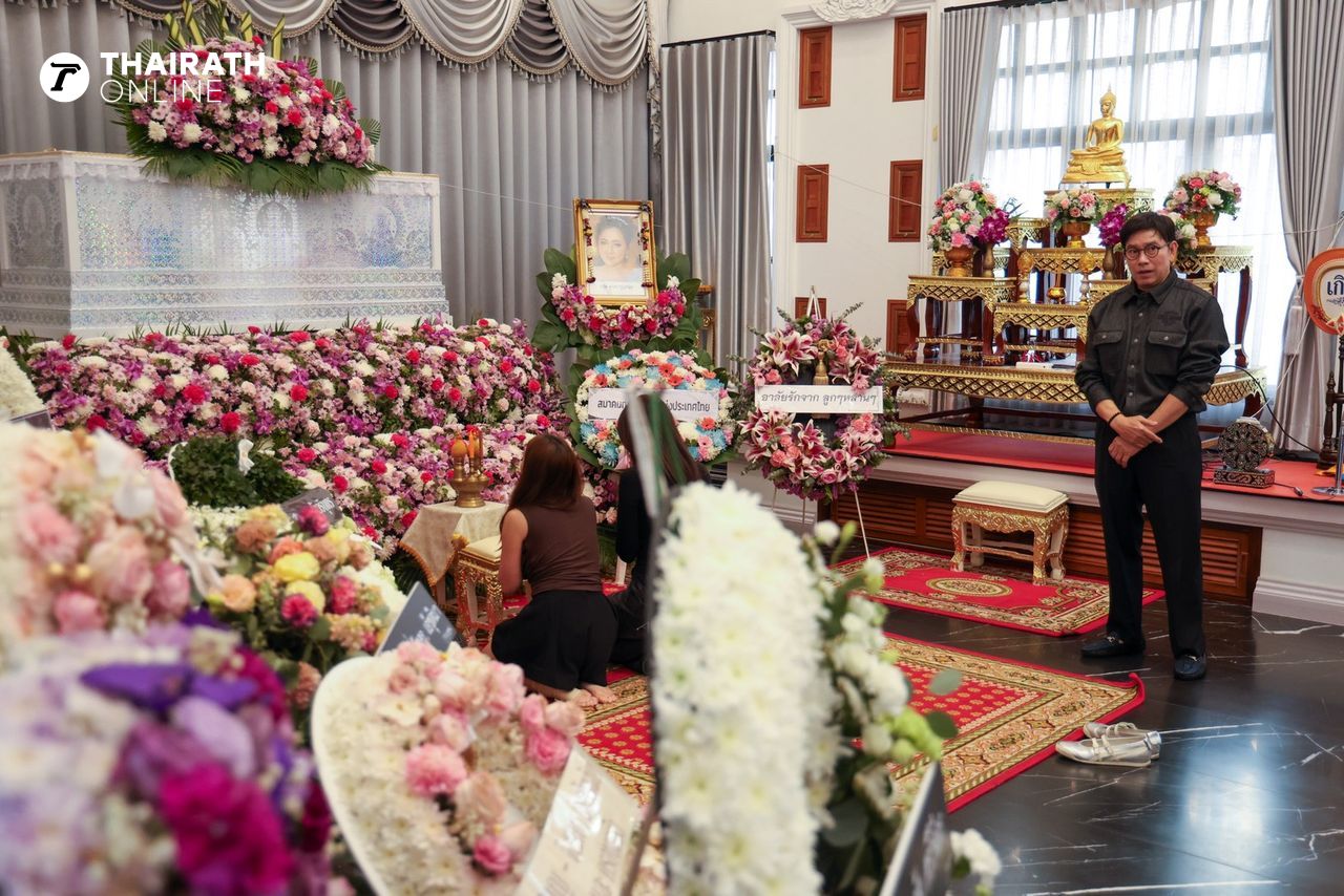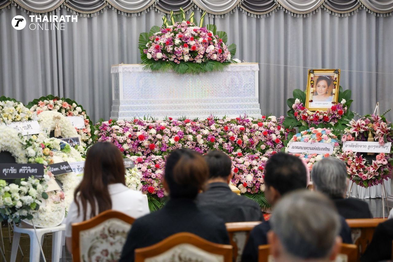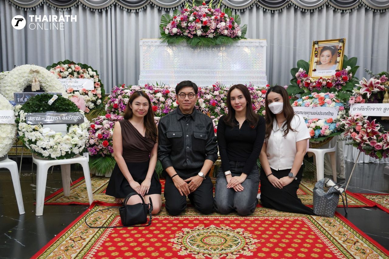 ซึ่งในคืนนี้ (10 มี.ค. 2569) เป็นงานสวดพระอภิธรรมคืนสุดท้ายแล้ว จัดขึ้นที่ศาลา 1 วัดสัมมาชัญญาวาส บรรยากาศเต็มไปด้วยความโศกเศร้าของสามีและลูกๆ โดยเฉพาะ หนึ่ง นึกคิด ผู้เป็นสามี ยังโศกเศร้ากับการจากไปของภรรยา ภายในงานได้มีคนสนิทและคนรู้จักได้มาร่วมแสดงความอาลัยกันจำนวนมาก