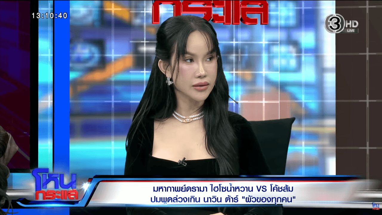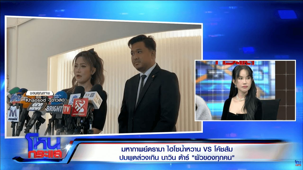 หลังจากที่ โค้ชส้ม คู่กรณีของนักธุรกิจไฮโซสาว น้ำหวาน พัสวี พยัคฆบุตร ภรรยานักร้องนักแสดงหนุ่ม ต้าร์ นาวิน เยาวพลกุล หรือ นาวิน ต้าร์ ไปร่วมรายการ “โหนกระแส” ทางช่อง 3 เพื่อชี้แจงถึงดราม่าที่ไฮโซน้ำหวานบอกว่าเจ้าตัวแสดงออกไม่เหมาะสมทั้งคำพูด กิริยาท่าทาง การแต่งตัว แถมมีเสียงครางตอนอยู่ในห้องประชุมด้วย