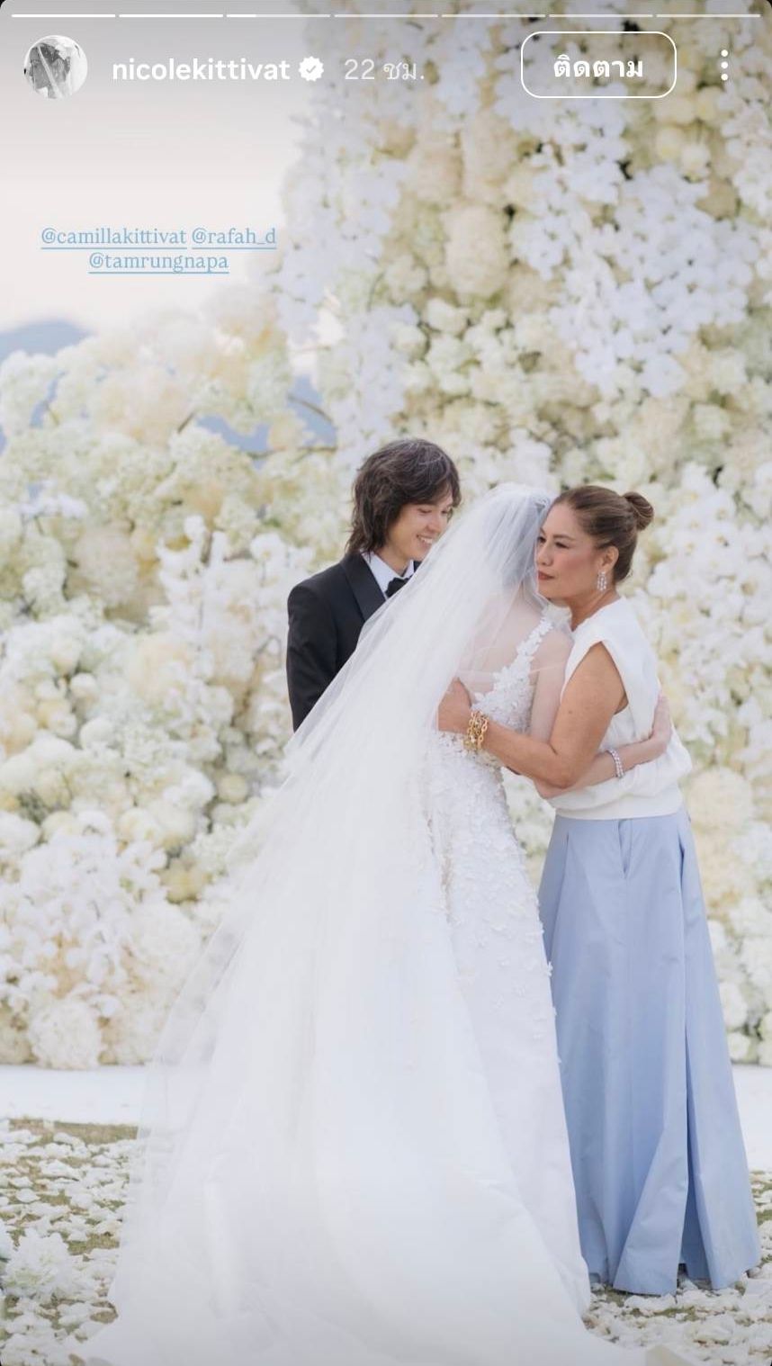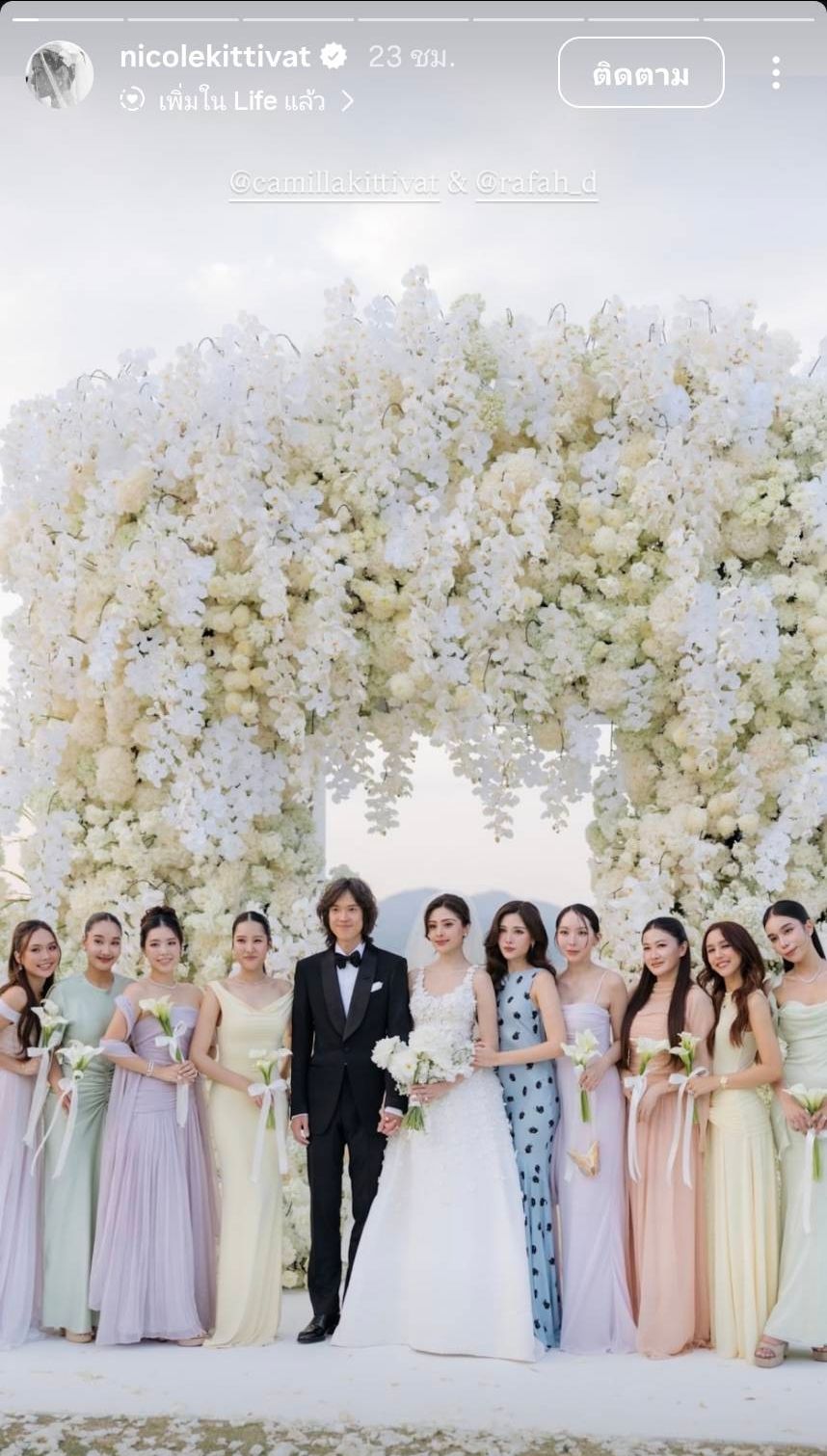 โดยในอินสตาแกรม @camillakittivat ได้โพสต์ภาพบรรยากาศพร้อมทั้งเขียนข้อความว่า “Still reliving the most beautiful day of our lives. My heart is so full. Thank you to our wonderful family and friends who came to celebrate with us and be part of our wedding. This day will forever live in our core memories. We feel so grateful and so loved.”