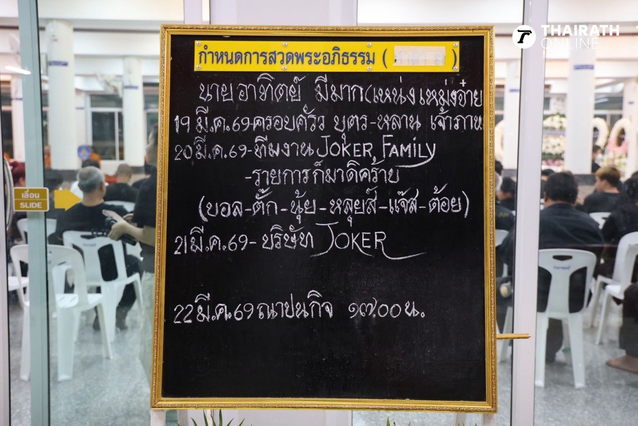 ล่าสุดเมื่อช่วงเย็นวันที่ 19 มี.ค. 2569 ได้มีพิธีสวดพระอภิธรรมศพ เหน่ง เหม่งจ๋าย เป็นคืนแรก บรรยากาศภายในงานเต็มไปด้วยความเศร้าโศก มีคนในครอบครัวรวมถึงญาติๆ คนสนิท ผู้ใหญ่ มาร่วมงานมากมาย
