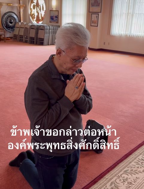 ขอพระองค์จงเป็นพยาน หากเขากล่าวคำโกหก ขอให้ข้าพเจ้ามีแต่ความเจริญรุ่งเรือง แต่ถ้าหากว่าเขาพูดจริง ขอให้เขามีความเจริญ หากเขาพูดโกหก กล่าวเท็จต่อสื่อมวลชนและโซเชียล ขอให้ธรรมชาติพิพากษากล่าวร้ายต่อบุพการีด้วยเถิด นี่คือคำอธิษฐานของผม ต่อหน้าองค์พระพุทธรูป อันศักดิ์สิทธิ์ ณ ประเทศสหรัฐอเมริกา สาธุ สาธุ สาธุ.”