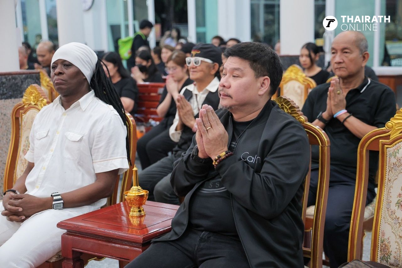 สำหรับบรรยากาศเป็นไปด้วยความเศร้าโศกของคนในครอบครัว ตลอดจนเพื่อนๆ คนสนิทที่มาร่วมงาน ด้าน กีตาร์ ลูกสาวคนโตของเหน่ง พร้อมทั้งคุณแม่ปาริชาติ อภิศักดิ์สกุลชัย อดีตภรรยา กับ น้องเพนนี ลูกสาวอีกคน พร้อมกับคุณแม่เจเจ ยุวฉัตร อดีตภรรยาอีกคน เดินทางมาร่วมงานศพด้วย ในขณะที่ ไอซ์ ถลัชนันท์ ภรรยาคนปัจจุบัน ที่วันนี้นุ่งขาวห่มขาว และตั้งใจทานมังสวิรัติ เพื่อทำบุญให้กับสามี ก็ยังคงร้องไห้เสียใจ โดยมีคนสนิทคอยเช็ดน้ำตาและกอดปลอบใจ