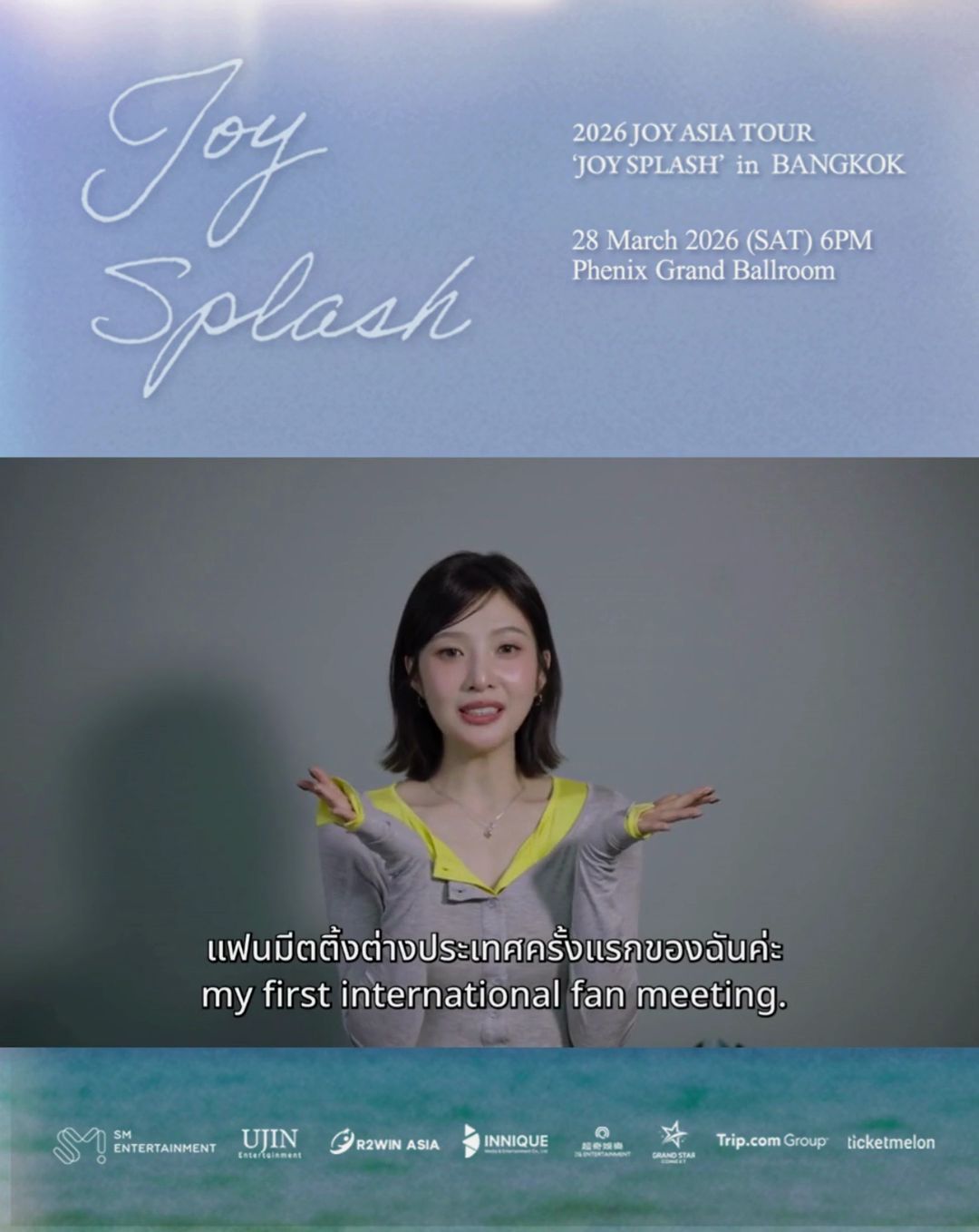 ตื่นเต้นไม่ไหวใกล้ถึงวันที่จะพบกับสาวสวย รอยยิ้มสดใส สาว "จอย" ที่จะบินลัดฟ้ามาหาชาวลัฟวี่ไทยทุกคน ในงาน 2026 JOY ASIA TOUR ‘JOY SPLASH’ in BANGKOK วันเสาร์ที่ 28 มีนาคม 2569 Phenix Grand Ballroom