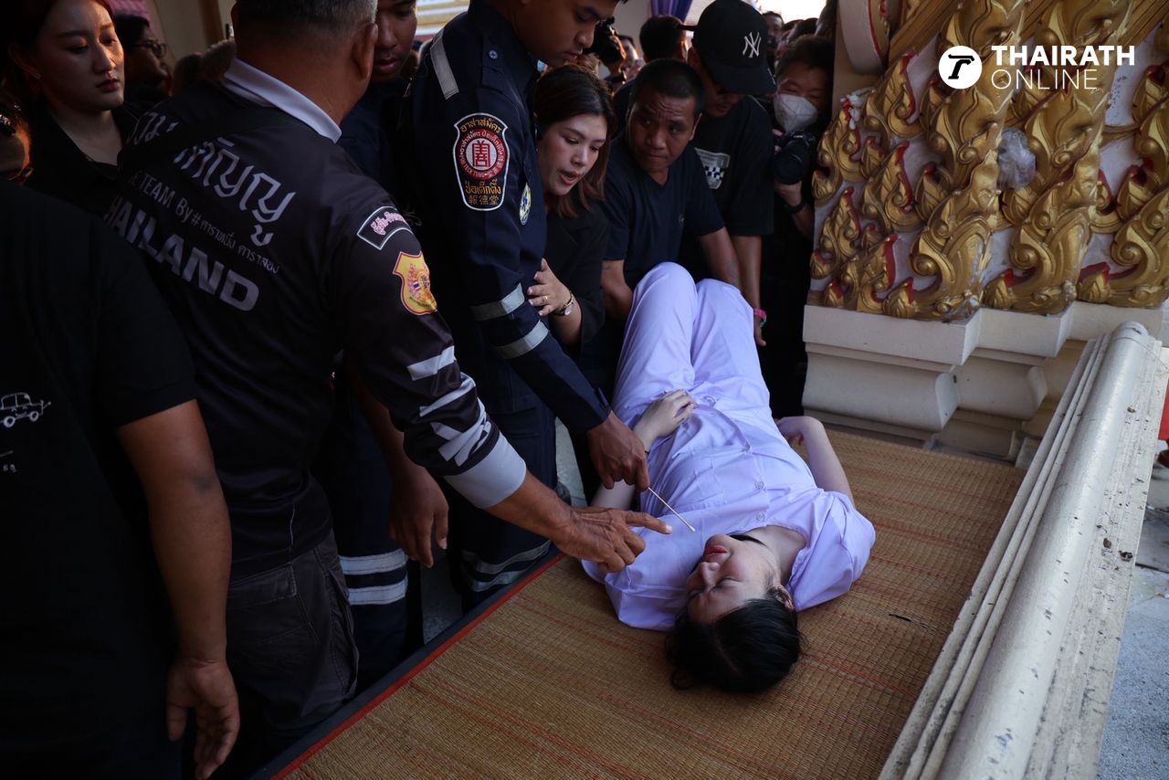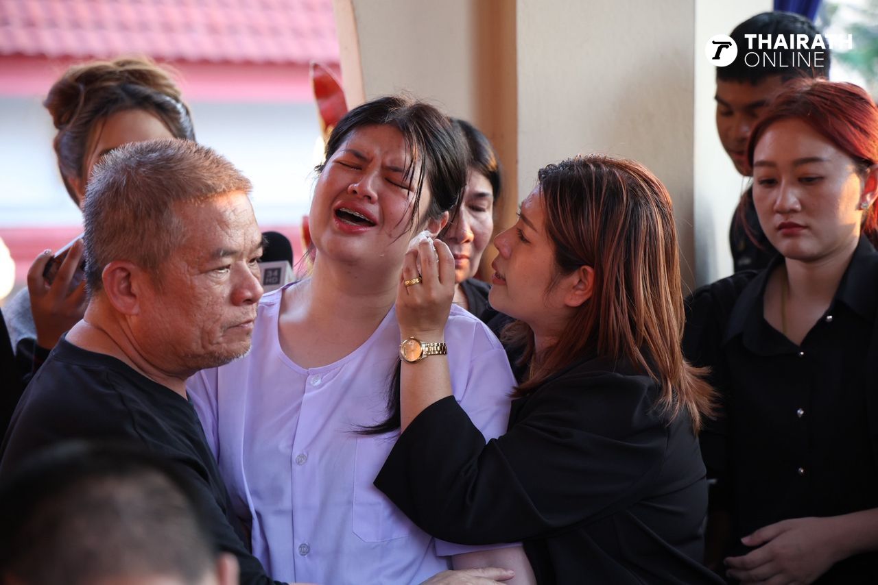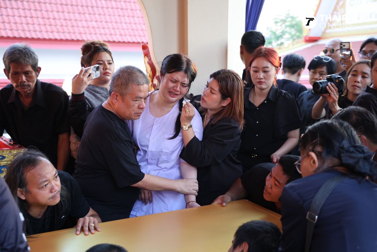 และในช่วงพิธีฌาปนกิจที่กำลังนำโลงศพเข้าเตาเผา ทางเจ้าหน้าที่ได้ให้ญาติๆ ขึ้นมาส่งหน้าเตาเผา และเปิดโลงเพื่อร่ำลาเป็นครั้งสุดท้าย ด้าน ไอซ์ ภรรยาของ เหน่ง เหม่งจ๋าย ก็ได้ขึ้นมาบนเมรุ ร้องไห้แทบขาดใจ จนเป็นลมหน้าเตาเผา จนเพื่อนและญาติๆ ต้องช่วยพยุงและให้นอนพัก เพื่อให้อาการดีขึ้น