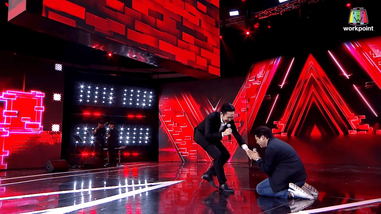 แต่พอพูดคุยได้สักพัก พลพลบอกว่าน่าจะเป็นคนยุคก่อน Y2K เป็นนักแสดงและนักร้องด้วย ก่อนที่พิธีกรจะให้แขกรับเชิญใบ้ชื่อนักร้องหลังกำแพง ซึ่งมีหลากหลายชื่อมาก แต่สุดท้ายพลพลเลือกเชื่อตัวเอง ทายว่า อู๊ด เป็นต่อ แต่พอเปิดกำแพงออกมาทำเอาพลพล ถึงกับทรุดลงไปนั่งแล้วยกมือไหว้เลย ก่อนที่จะร้องเพลงจนจบและกอดกัน