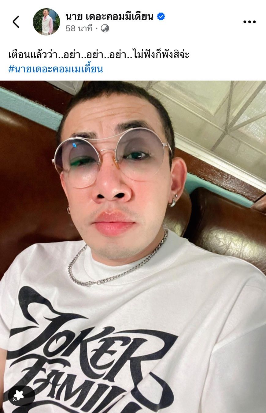 ล่าสุด นาย เดอะคอมเมเดี้ยน หรือ นาย มงคล สะอาดบุญญพัฒน์ นักแสดงตลกชื่อดัง น้องชายคนสนิทอีกคนของ เหน่ง เหม่งจ๋าย ก็ได้ออกมาโพสต์ข้อความว่า “เตือนแล้วว่า..อย่า..อย่า..อย่า..ไม่ฟังก็พังสิจ่ะ #นายเดอะคอมเมเดี้ยน”