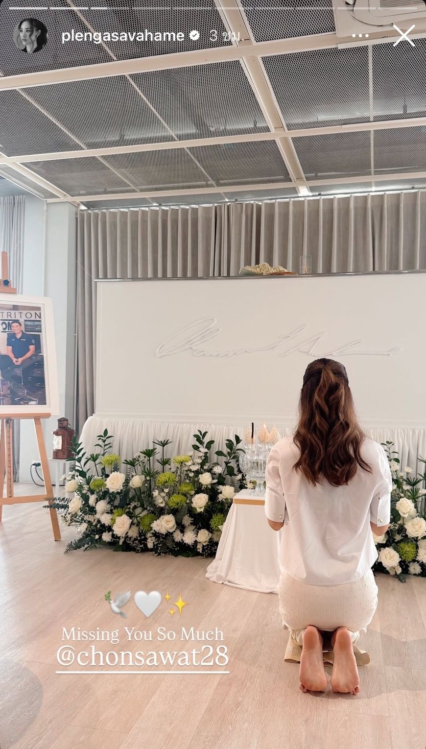 ซึ่งภาพดังกล่าวเป็นภาพที่ น้องเพลงกับเป๊ก ได้ร่วมเฟรมกันพร้อมกับเพื่อนๆ ซึ่ง น้องเพลง ได้รีโพสต์และเขียนว่า "ขอบคุณที่มาร่วมงานนะ พ่อคงกำลังยิ้มมองลงมาจากบนฟ้าแน่นอน" และ เป๊ก ก็ได้รีโพสต์ภาพนี้เช่นกัน และนอกจากนี้ยังมีภาพที่ เป๊ก ร่วมเฟรมกับญาติๆ ของเพลงอีกด้วย