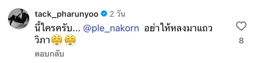 ด้าน แทค ภรัณยู ก็ได้เข้ามาแซวพร้อมติดแท็กถึง เปิ้ล นาคร บอกว่า "นี้ใครครับ... @ple_nakorn อย่าให้หลงมาแถว วิภา" ว่าแต่ พ่อเปิ้ล นาคร เห็นรึยังนะ