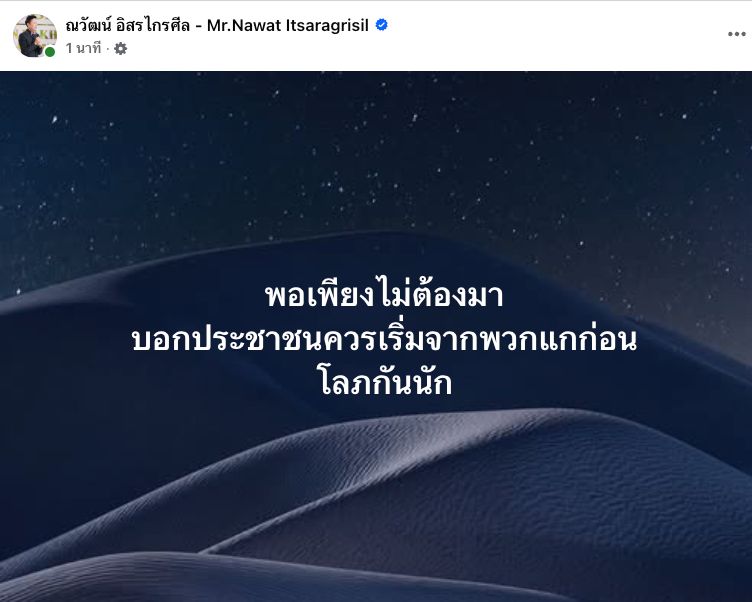 ข้อความระบุไว้แบบนี้ ไม่ต้องมาพูดคำว่าพอเพียงพร้อมตอกกลับเน้นๆ ว่าถ้าจะให้ประชาชนทำตามควรเริ่มจากพวกแกก่อนก่อนจะทิ้งท้ายประโยคที่อ่านแล้วหน้าสั่นว่าโลภกันนัก คำนี้แหละทำเอาหลายคนคาดเดาไปต่างๆ ว่าหมายถึงกลุ่มไหนหรือองค์กรใดกันแน่