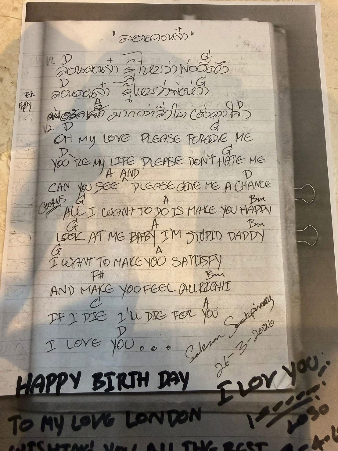 “ลอนดอนน้อยของพ่อ นี้เป็นเพลงของลูกคนเดียวนะครับ มีความสุขมากๆนะครับ พ่อคิดถึงลูก” #เสกโลโซ #TGTiger"
