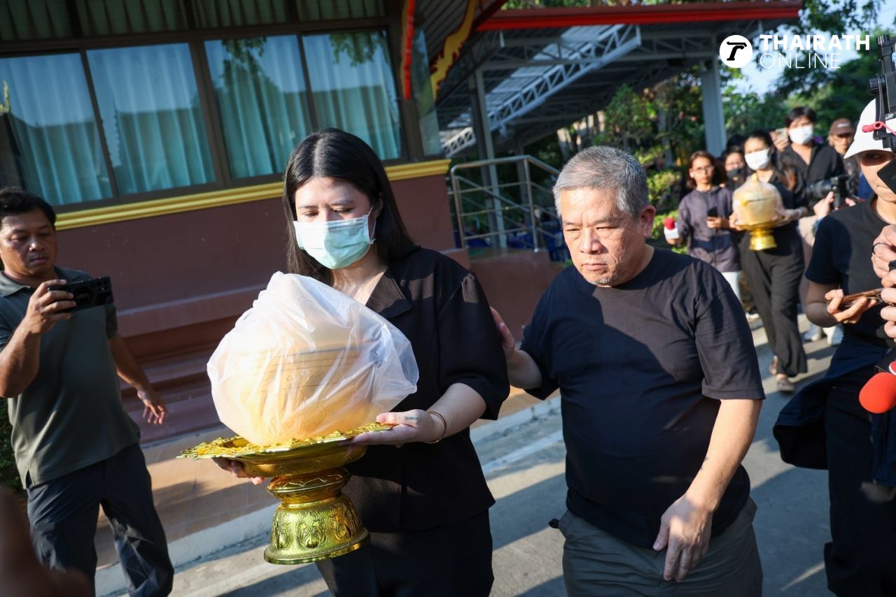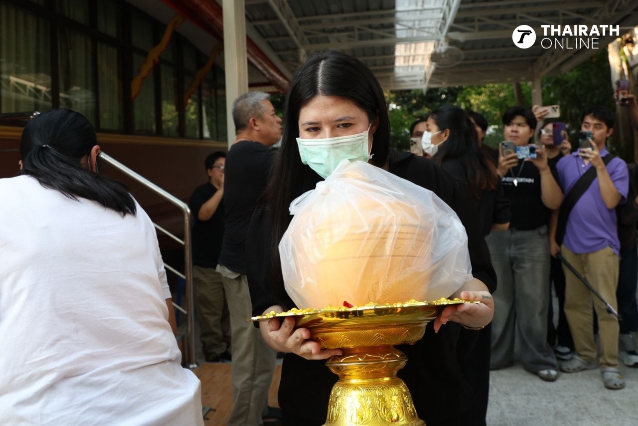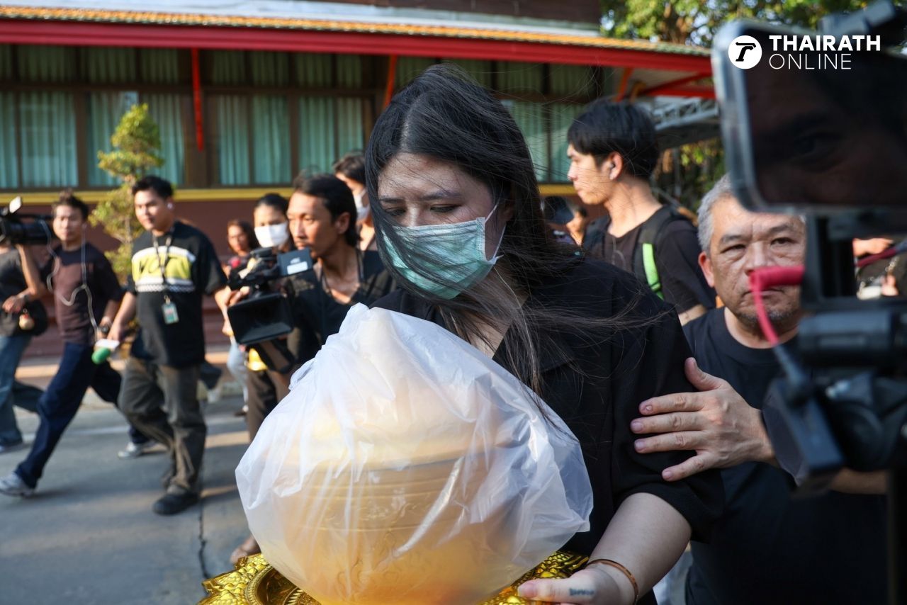 หลังจากที่ ไอซ์ ถลัชนันท์ ภรรยาของ เหน่ง เหม่งจ๋าย นักแสดงตลกผู้ล่วงลับ พร้อมด้วย กีต้าร์ พัชรามญช์ มีมาก ลูกสาวคนโตของเหน่ง เดินทางมาถึงวัดกลางคลอง 4 จ.ปทุมธานี เพื่อรับอัฐิของเหน่ง โดยทั้งคู่สวมชุดสีดำ สวมหน้ากากอนามัย ท่ามกลางสื่อมวลชนที่มาร่วมทำข่าว