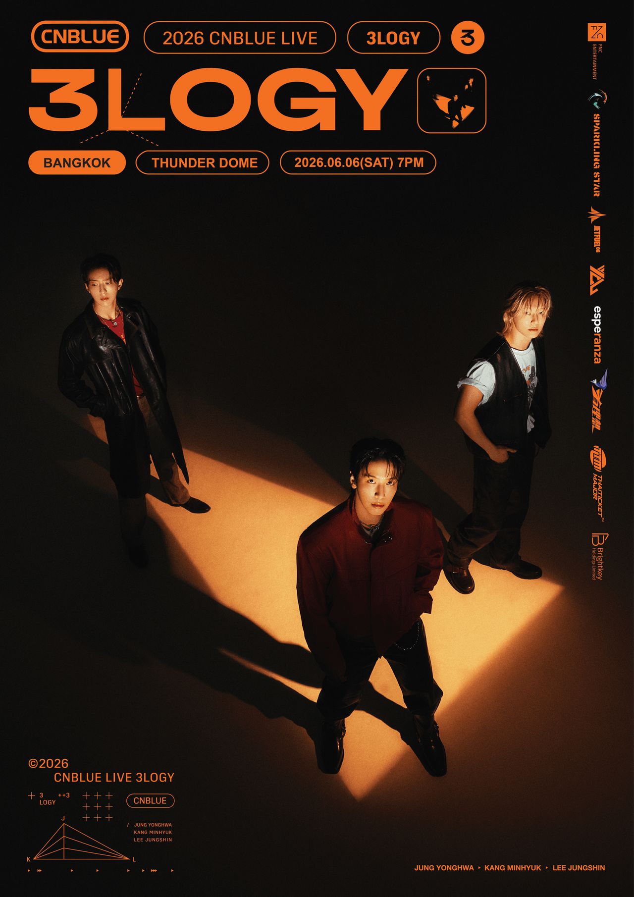 “สวัสดีครับ พวกเรา CNBLUE ครับ! เหล่า Boice กรุงเทพฯ ครับ พวกเรา CNBLUE จะไปพบกับทุกคนในคอนเสิร์ต 2026 CNBLUE LIVE WORLD TOUR '3LOGY' IN BANGKOK ที่กรุงเทพฯ ครับ! ใช่ครับ เหมือนไม่ได้เจอ Boice ชาวไทยมานานเลยนะครับ คอนเสิร์ตครั้งนี้จะจัดขึ้นในวันเสาร์ที่ 6 มิถุนายน ที่ธันเดอร์โดมครับ พวกเรากำลังเตรียมการแสดงที่ยอดเยี่ยมไว้ให้ ดังนั้นขอให้ Boice ทุกคนช่วยรอกันอีกนิดนะครับ พวกเรา CNBLUE ครับ! ขอบคุณครับ”