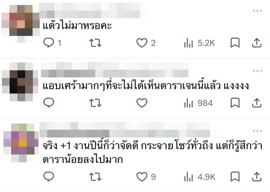 งานนี้ทำให้แฟนๆ หลายคนพากันตั้งคำถามถึงนางเอกในดวงใจ ไม่ว่าจะเป็น มาร์กี้ ราศรี, มิ้นต์ ชาลิดา, แมท ภีรนีย์, มิว นิษฐา, แต้ว ณฐพร, เต้ย จรินทร์พร, ณิชา ณัฏฐณิชา, แพทริเซีย กู๊ด, พรีม รณิดา, แยม มทิรา ไปไหน หรืออาจจะแยกย้ายกันไปเติบโต และมีชีวิตครอบครัวแล้ว