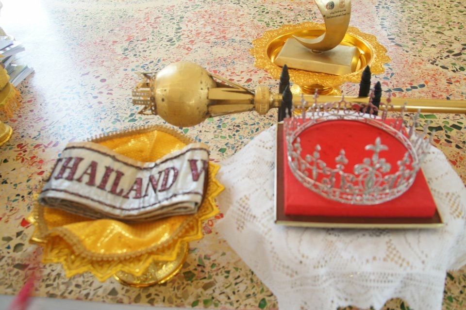 พระอาจารย์ก็เลยบอกว่าอยากจะเอาไว้ข้างล่าง เอาไว้ให้คนดูว่า “ดูสิเราไม่ยึดติดกับสิ่งของ ไม่ยึดติดกับอะไรเลย” กว่าจะได้มาในปีนั้นต้องต่อสู้แค่ไหนกว่าจะได้มงกุฎ คฑา และสายสะพายมา แต่วันหนึ่งก็ไม่ยึดติด ถวายเป็นพุทธบูชา ให้คนได้ดูว่าเราไม่ได้ยึดติดกับสิ่งของพวกนี้