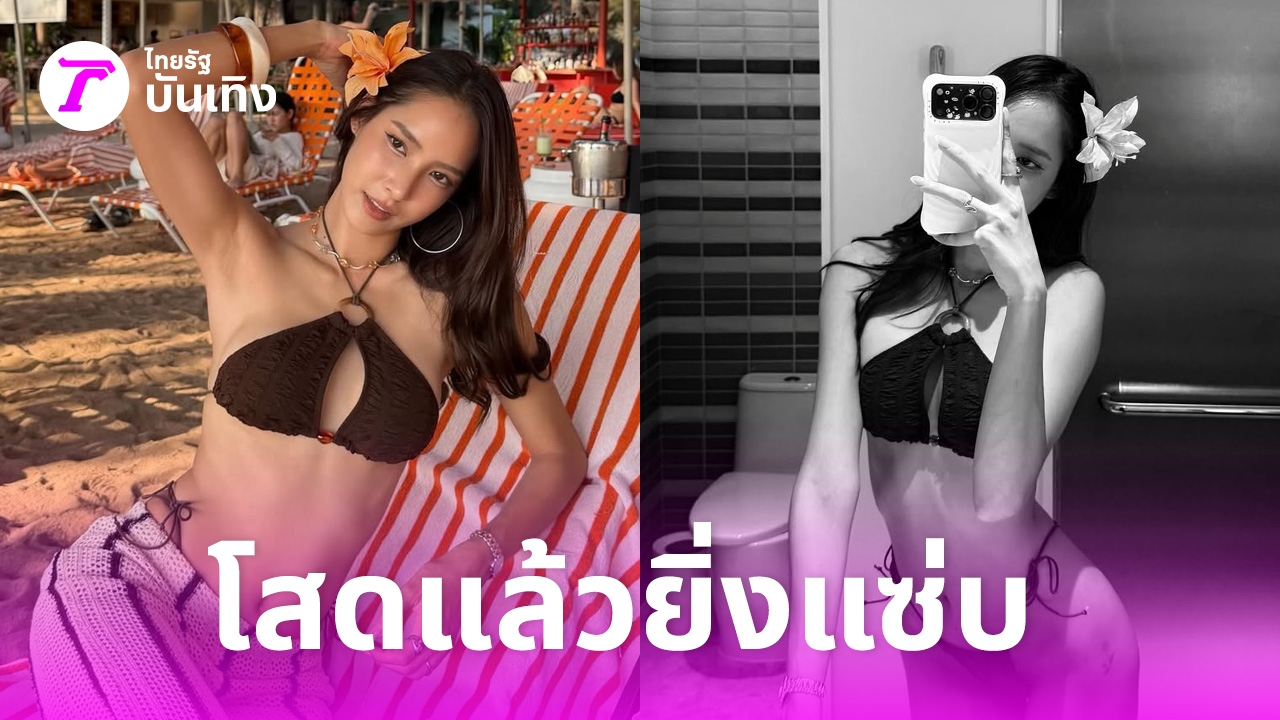 ยิ่งช็อตเซลฟี่หน้ากระจกก็ทำเอาฮือฮา เพราะเห็นรอยสักรูปดอกไม้เล็กๆ ที่ต้นขา เพิ่มความแซ่บเข้าไปอีก ส่วนท่าโพสที่ริมทะเลก็สวยเซ็กซี่น่ารักมากๆ จนแทบลืมไปว่านี่คือคุณแม่ลูกหนึ่งแล้วจ้า