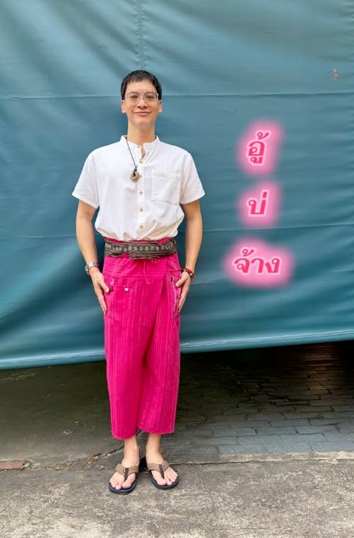 จากนั้นก็มีคนเข้ามาคอมเมนต์อีกว่า “ปกเพลงเหมือนสวัสดีวันจันทร์” พี่บี้บอกว่า “ก็ไม่ขนาดนั้น ไม่รู้ว่าทุกคนเห็นภาพปกคลิปใน TikTok มั้ย ที่ใส่กางเกงสีชมพู ข้างๆ เขียนว่า อู้บ่จ้าง และข้างหลังเหมือนผ้าใบ อันนั้นแม่ผมถ่าย ก็กลับไปเชียงใหม่ ก็ไปยืนอยู่หน้าโรงรถ และเอาผ้าใบลง และให้แม่ถ่ายให้ นั่นน่ะ แม่เป็นช่างภาพนะ เราใช้ชาวบ้านโปรดักชั่น ชาวบ้านสตูดิโอ”