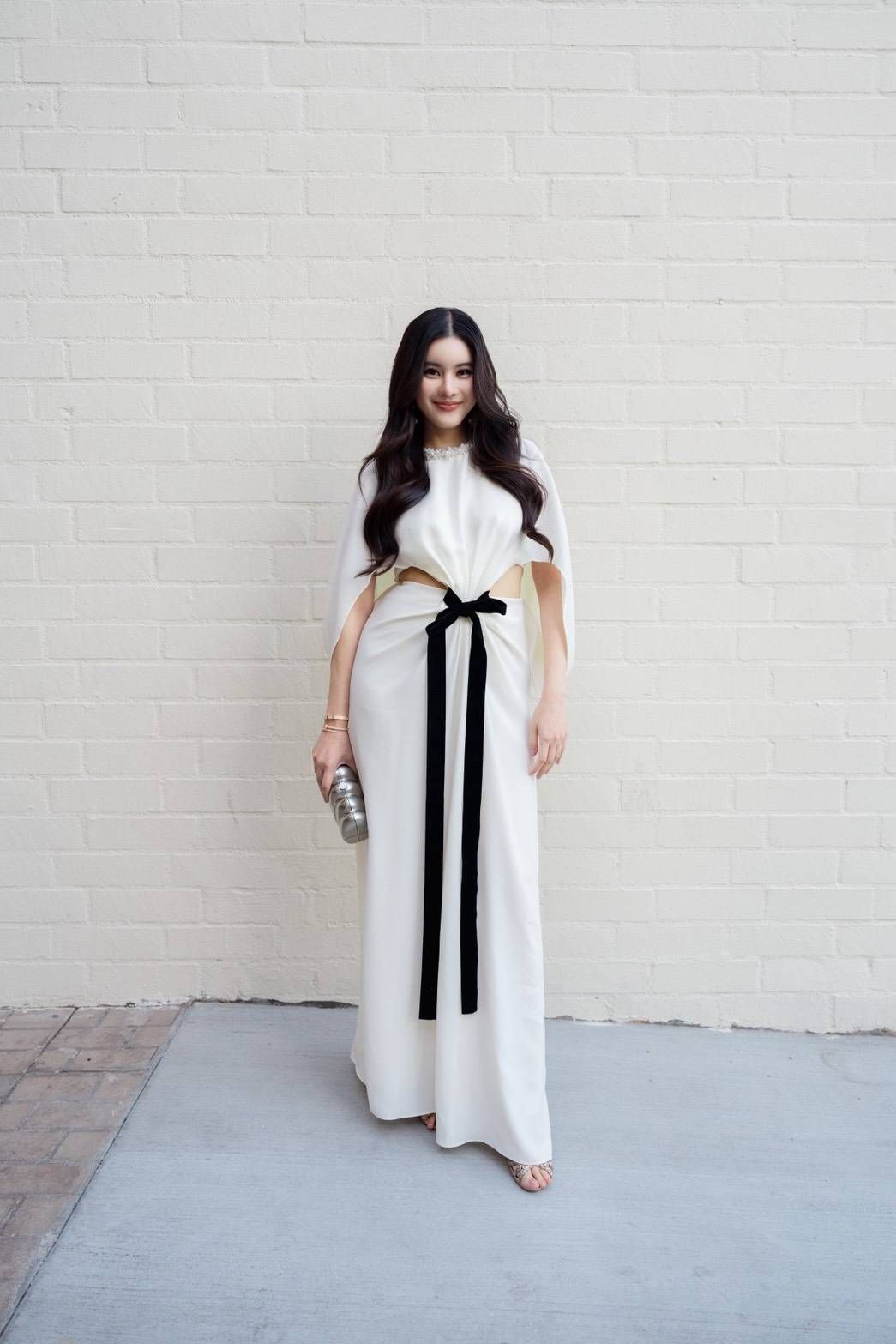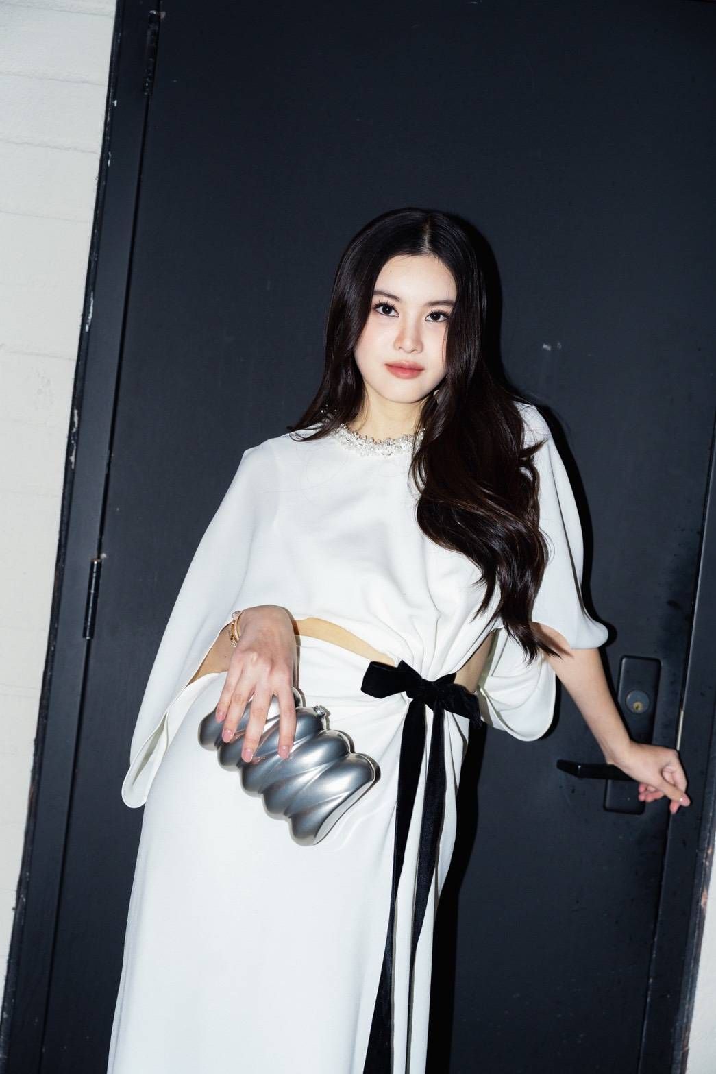 ลุคในงานของออนมาในชุดสีขาวเรียบหรู ผสมความหวานและความเฟี๊ยสอย่างลงตัว เสริมลูกเล่นด้วยโบสีดำ และคลัตช์เมทัลลิกสุดเก๋ สวยสะกดทุกสายตา นับเป็นอีกหนึ่งความภาคภูมิใจของคนไทย ที่สามารถนำ Soft Power ไทยไปเฉิดฉายบนเวทีโลกได้อย่างสง่างาม