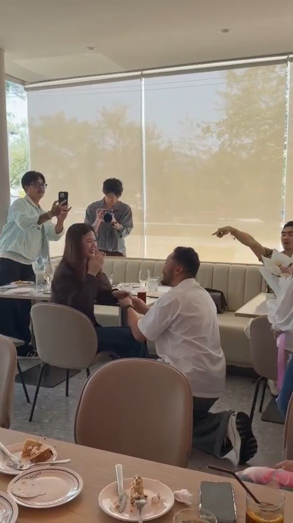 โดยเพจ ตลาดเท่งเถิดเทิง ออนทัวร์ ได้โพสต์คลิปนาทีที่มิกซ์ทำเซอร์ไพรส์ขอน้องอายแต่งงาน และเพื่อนๆ ต่างพร้อมใจช่วยกันถือป้ายประโยคขอแต่งงาน “แต่งงานกันเด้อ” พร้อมทั้งเปิดเพลง “แต่งงานกันเด้อ” ศิลปิน The Richman Toy งานนี้ทำเอาว่าที่เจ้าสาวออกอาการปลื้มใจสุดๆ ก่อนจะเซย์เยสให้มิกซ์สวมแหวนแต่งงาน