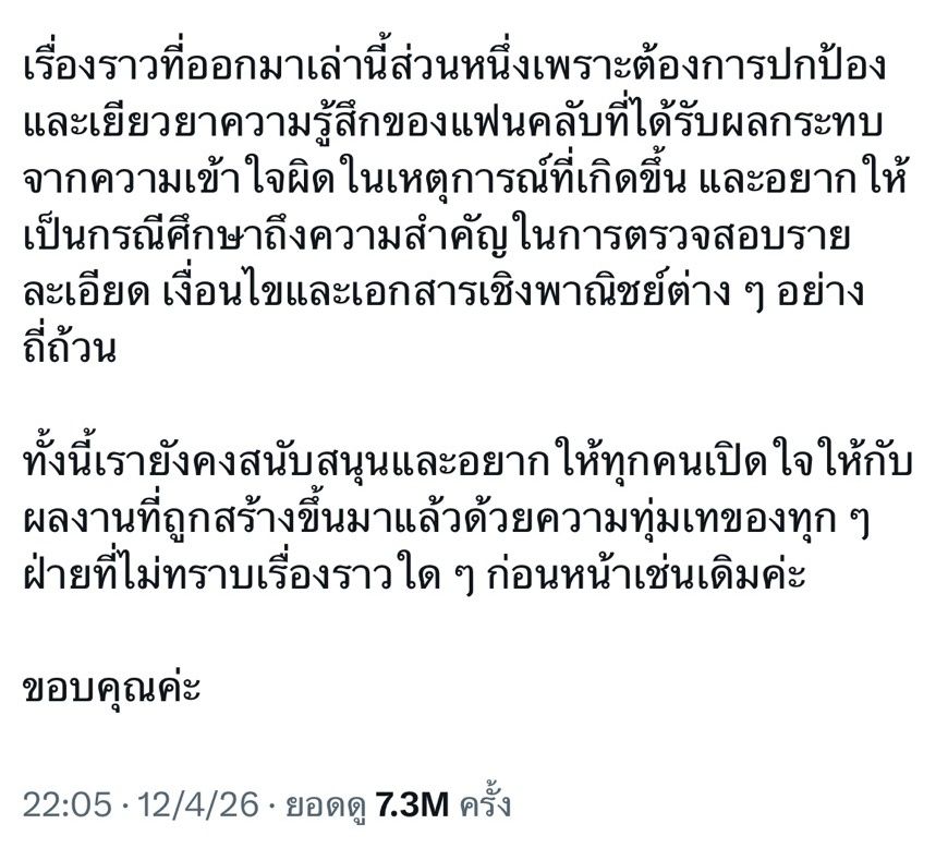 - บริษัทฯ ไม่เคยมีเจตนาที่จะละเมิดหรือเอาเปรียบผู้สร้างสรรค์ท่านใด และยังคงยึดมั่นในหลักการสร้างสรรค์งานอย่างมีความรับผิดชอบต่อทั้งประวัติศาสตร์ ผู้เกี่ยวข้อง และผู้ชม