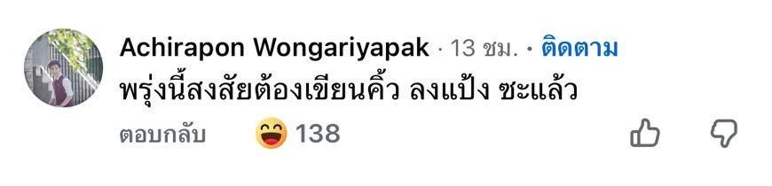 ทาง บิ๊ก ก็ได้เข้ามาคอมเมนต์ว่า “พรุ่งนี้สงสัยต้องเขียนคิ้ว ลงแป้ง ซะแล้ว”